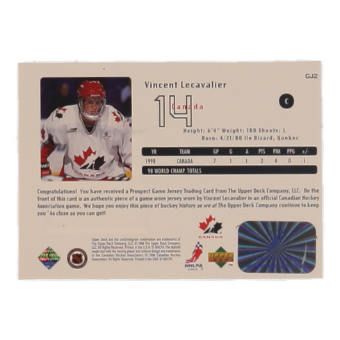 Vincent Lecavalier Signed 1998-99 Upper Deck Game Jerseys #GJ2 RC (Lecavalier)