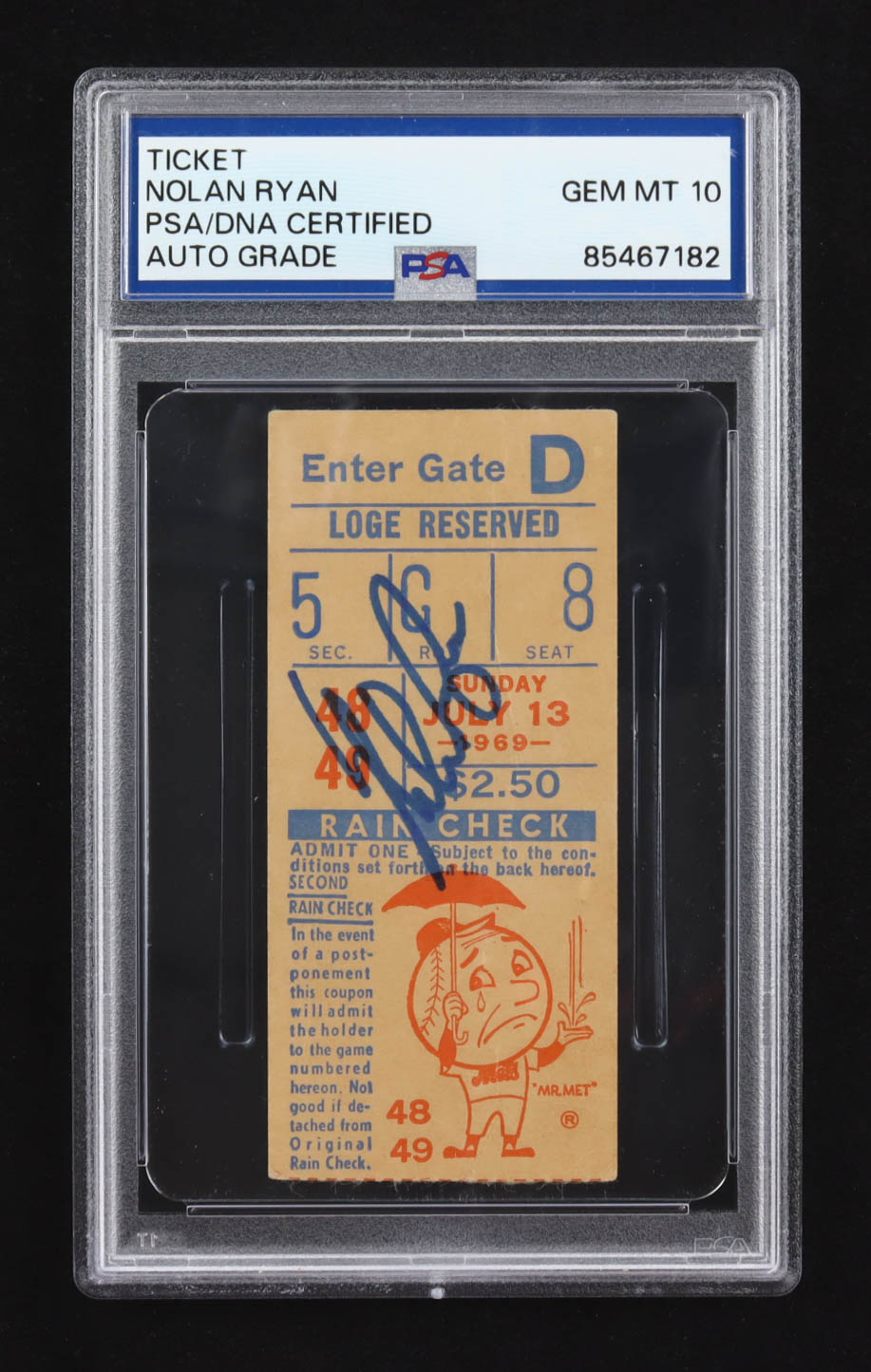 Nolan Ryan Signed 1969 Mets Vs Nationals Shea Stadium Game Ticket (PSA | Autograph Graded PSA 10)