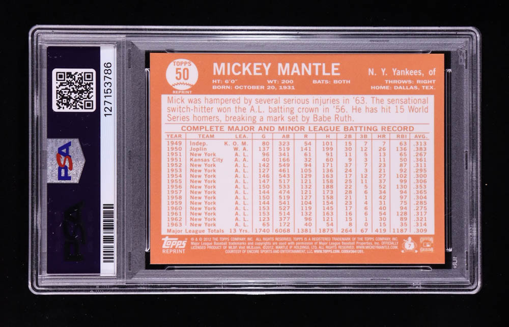 Mickey Mantle 2012 Topps Factory Set Mantle Chrome Gold Refractors #50 64T (PSA 9)