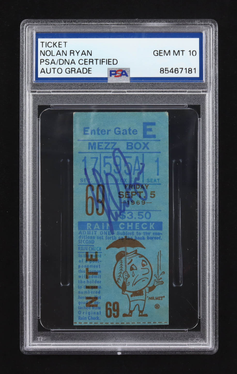 Nolan Ryan Signed 1969 Mets Vs Nationals Shea Stadium Game Ticket (PSA | Autograph Graded PSA 10)
