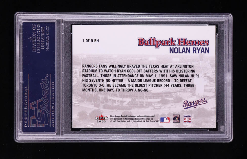 Nolan Ryan 2003 Flair Greats Ballpark Heroes #1 (PSA 10)