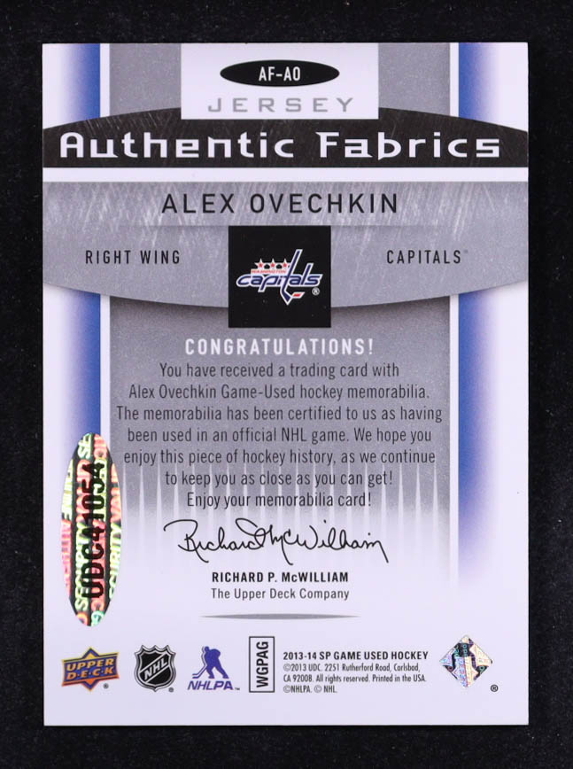Alexander Ovechkin Signed 2013-14 SP Game Used Authentic Fabrics #AFAO #08/15 (UDA)