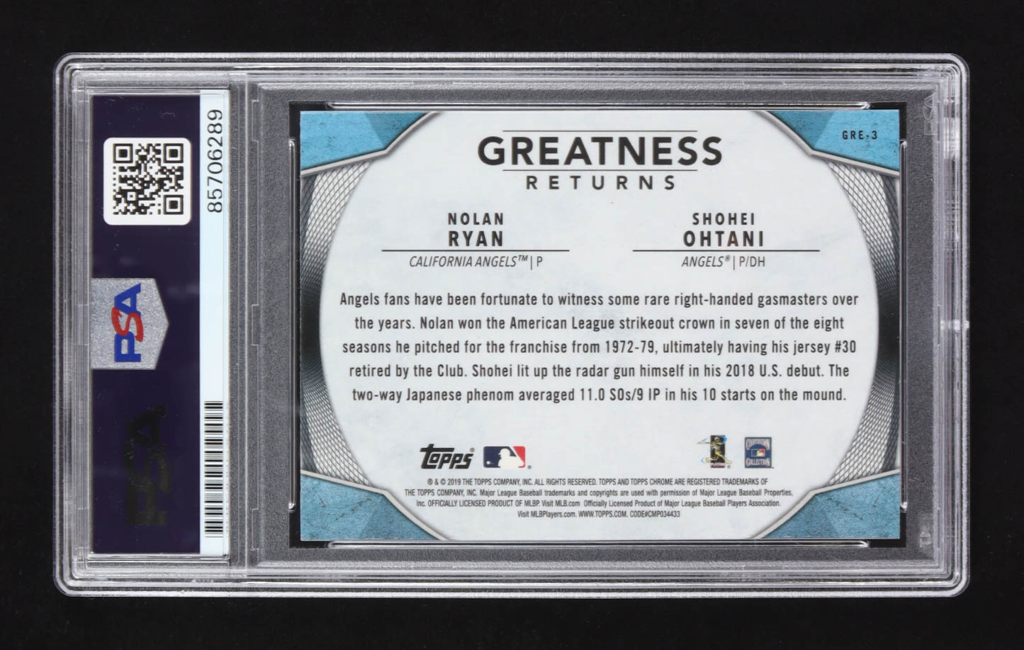 Nolan Ryan Signed 2019 Topps Greatness Returns With Shohei Ohtani #GRE-3 (PSA | Autograph Graded PSA 10)