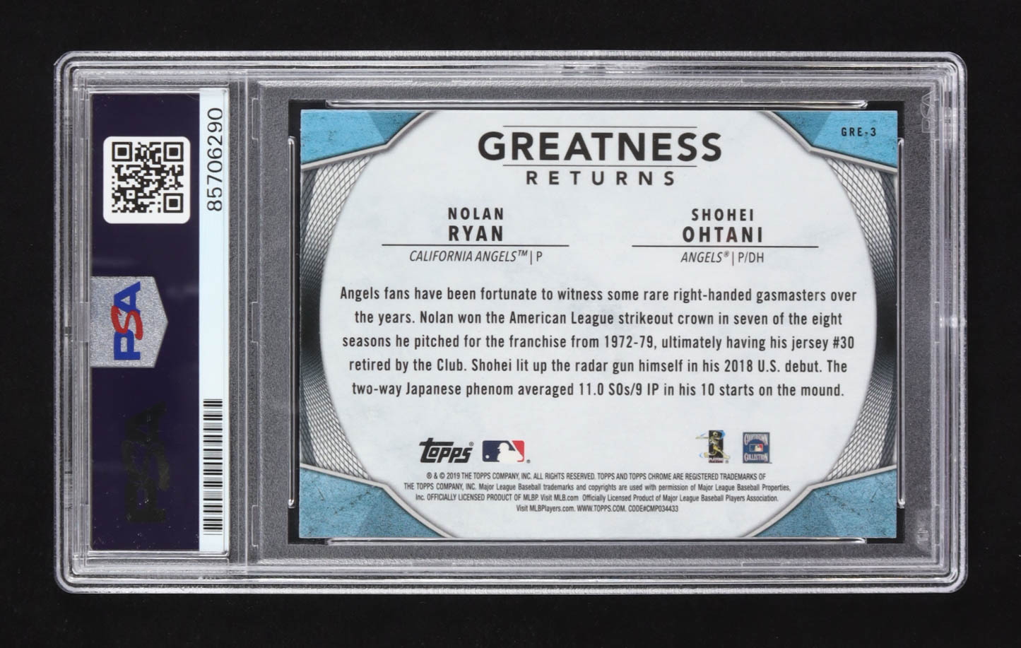 Nolan Ryan Signed 2019 Topps Greatness Returns With Shohei Ohtani #GRE-3 (PSA | Autograph Graded PSA 10)