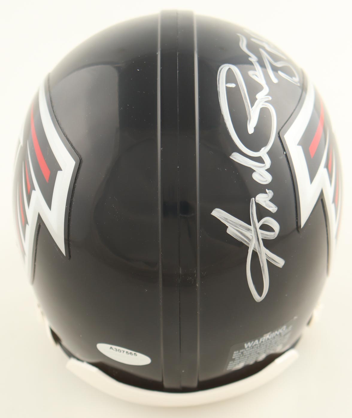 Riddell Atlanta Falcons Throwback Alternate mini helmet. Hand-signed and inscribed by Andre Rison.