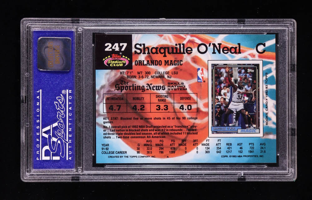 Shaquille O'Neal 1992-93 Stadium Club #247 RC (PSA 9)