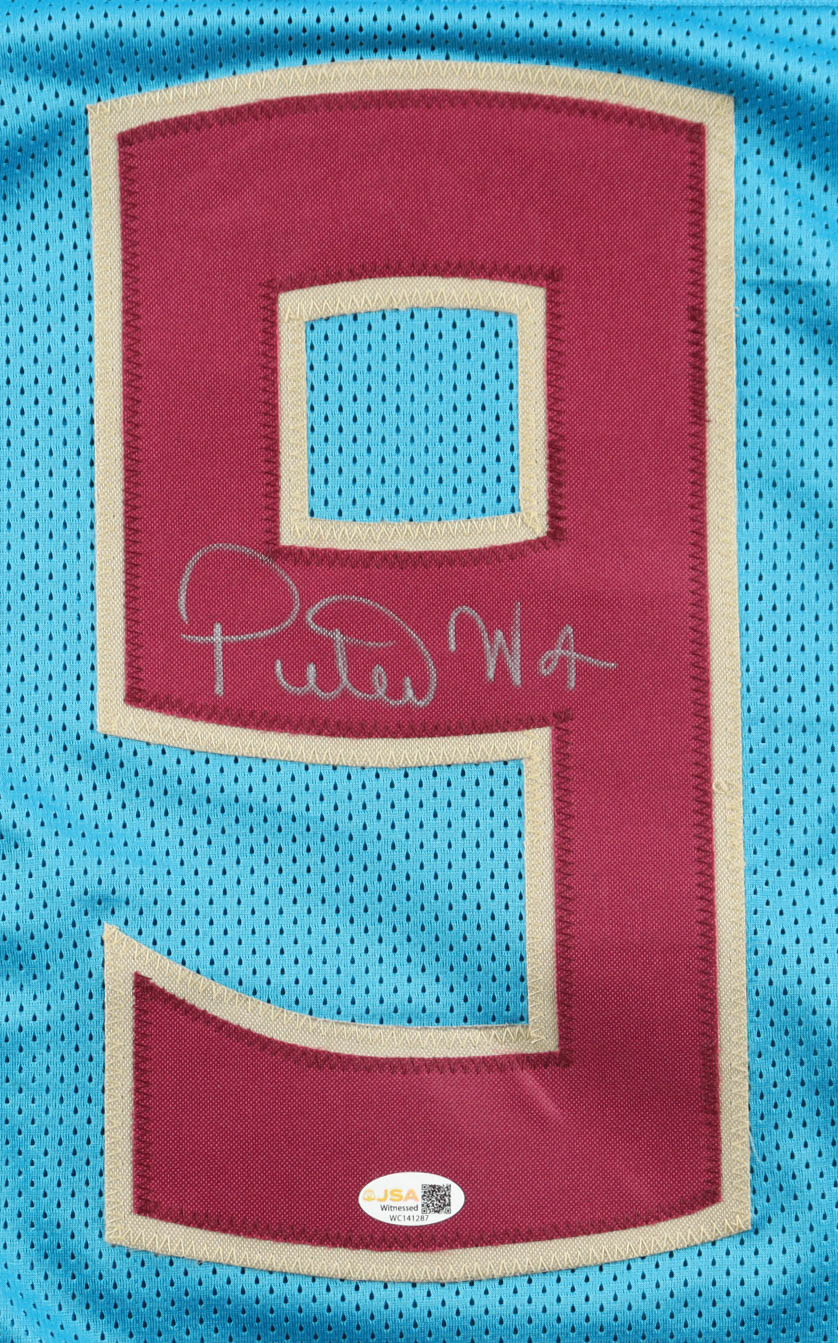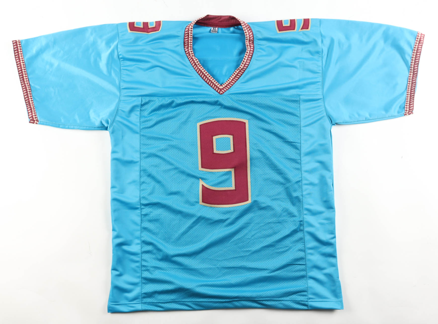 Custom jersey. Everything is sewn on, size XL. Has been hand-signed by Peter Warrick.