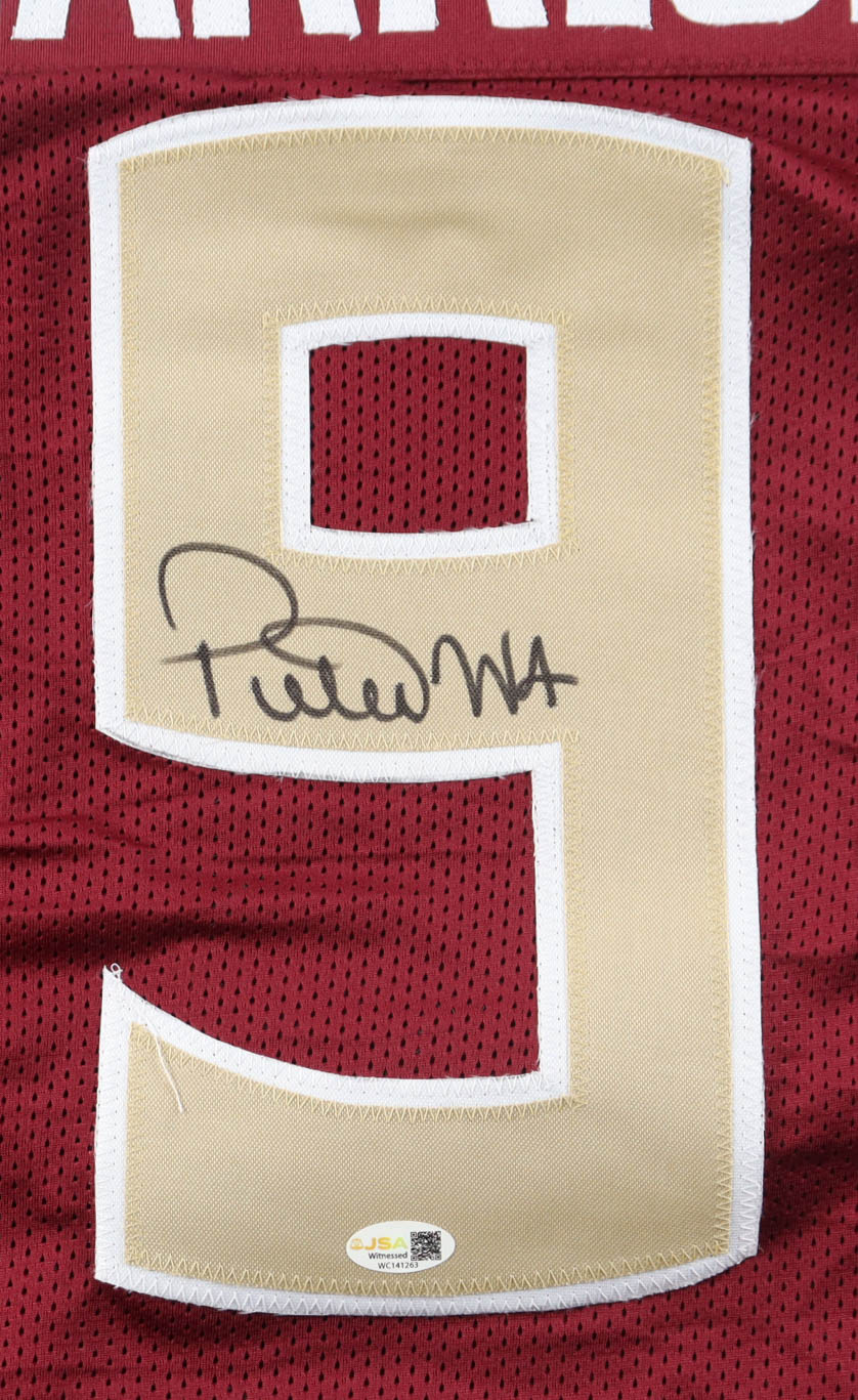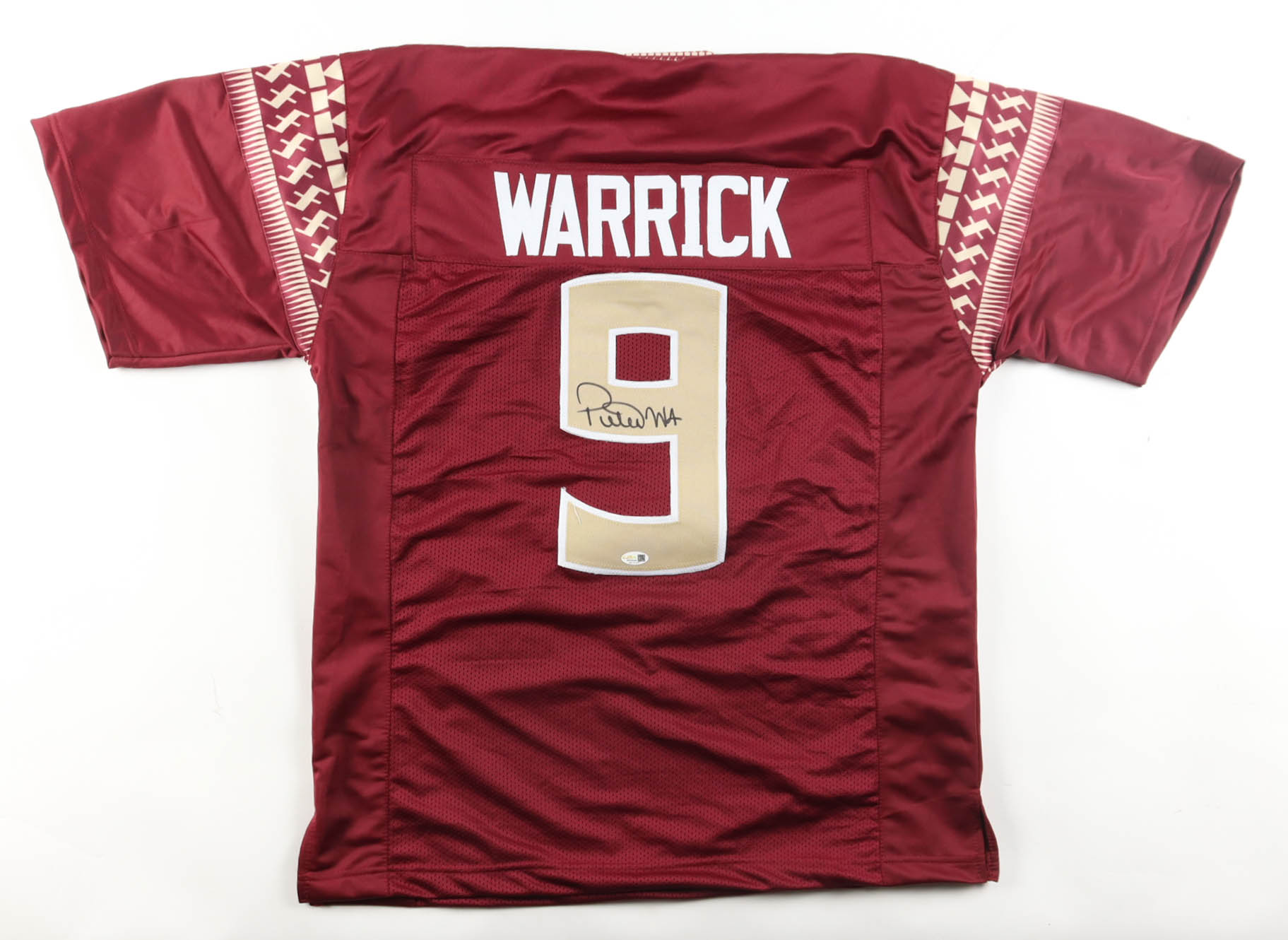 Custom jersey. Everything is sewn on, size XL. Has been hand-signed by Peter Warrick.