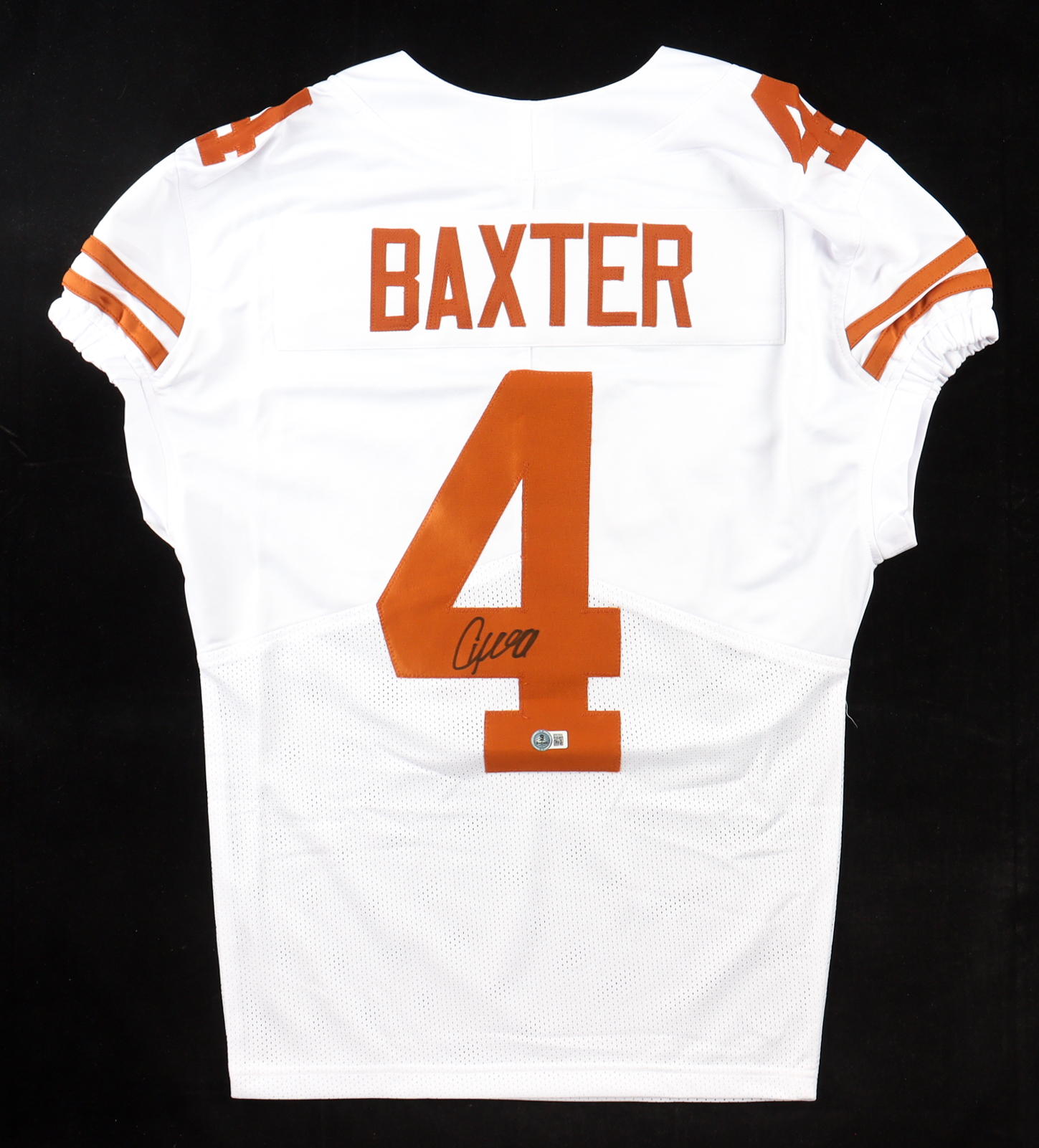 Custom jersey. Everything sewn on, size XL. Hand-signed by CJ Baxter.