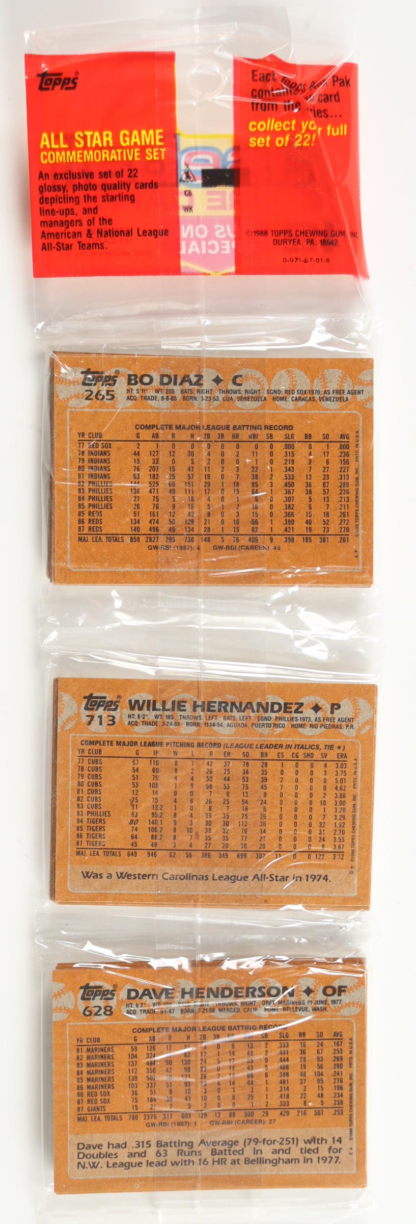 1988 Topps Baseball Picture Cards Rack Pack with (43) Cards