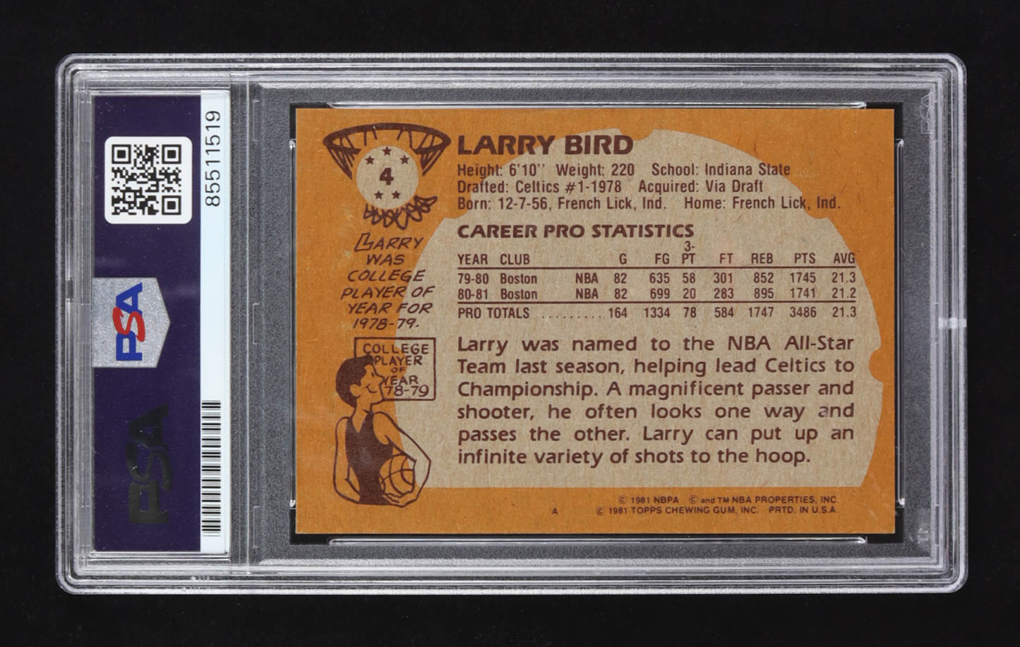 Larry Bird Signed 1981 Topps #4 (PSA | Autograph Graded PSA 10)