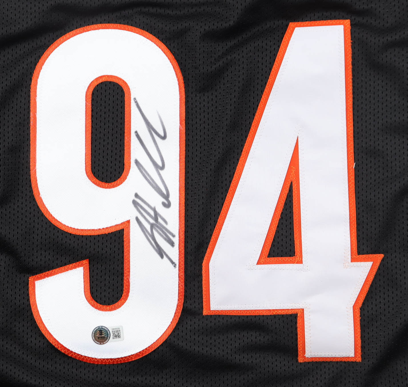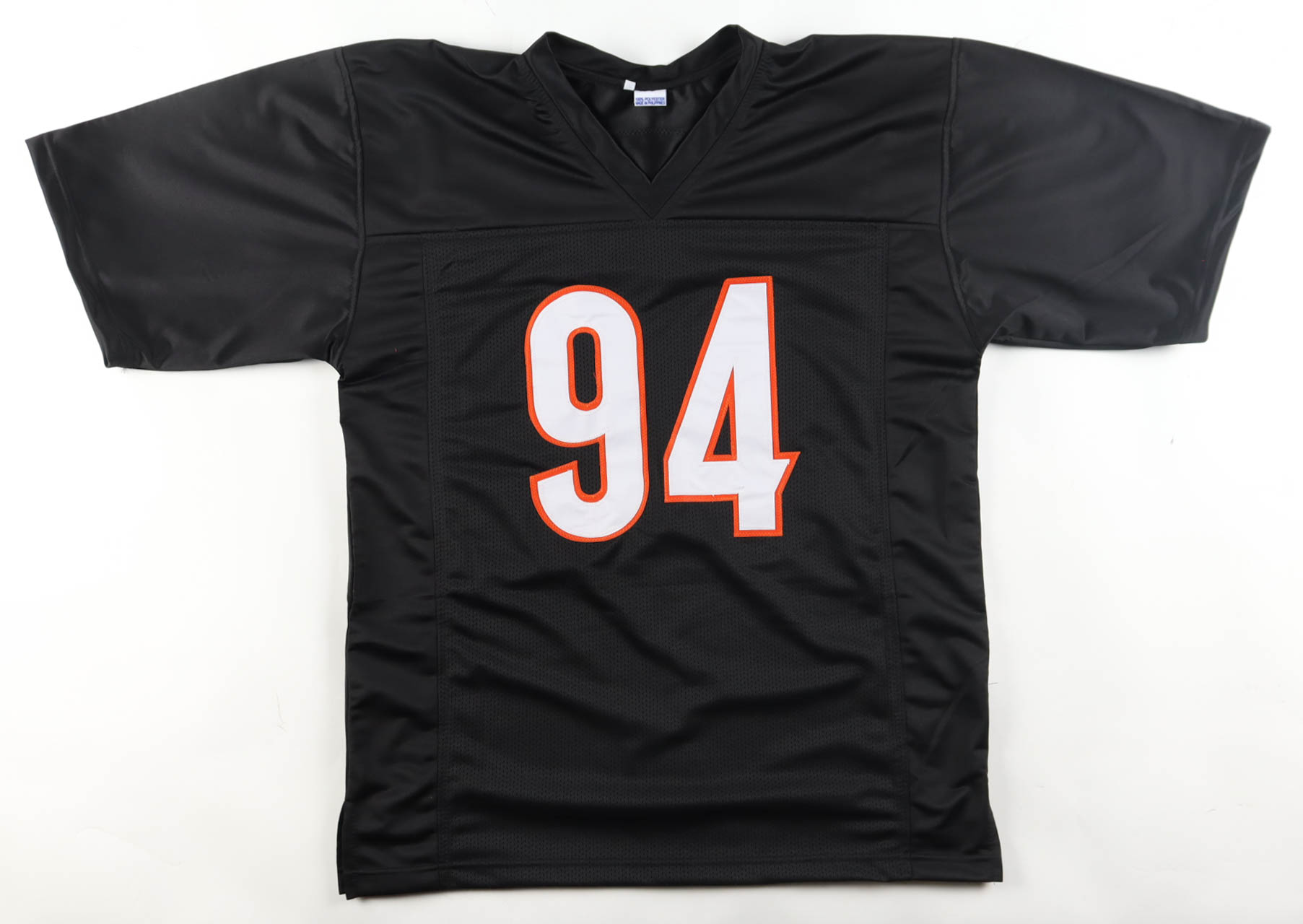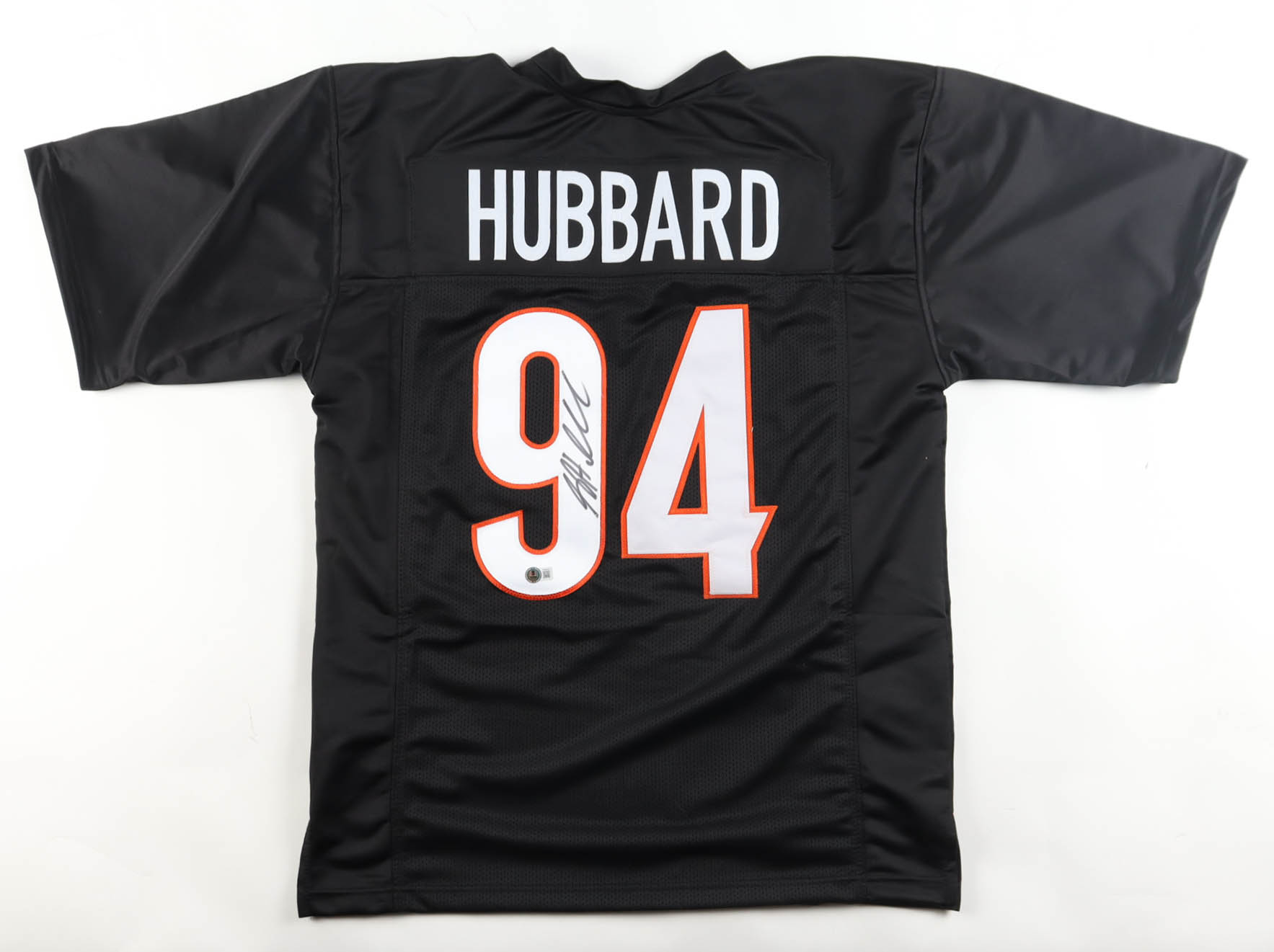 Custom jersey with everything sewn on, size XL. Hand-signed by Sam Hubbard.
