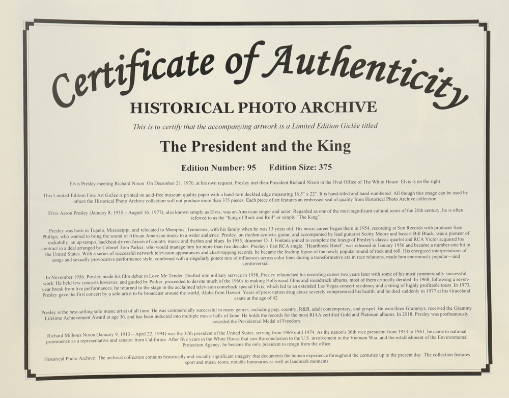Historical Photo Archive - "The President and the King" 1970 Limited Edition 16x22.5 Fine Art Giclee on Paper # 95 /375