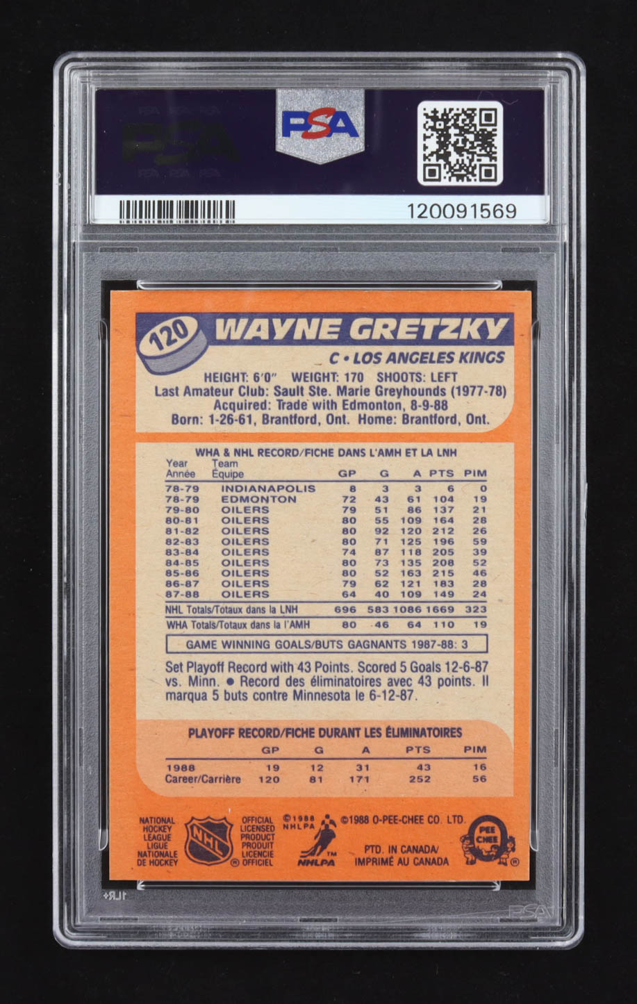 Wayne Gretzky 1988 O-PEE-CHEE #120 (PSA 8)