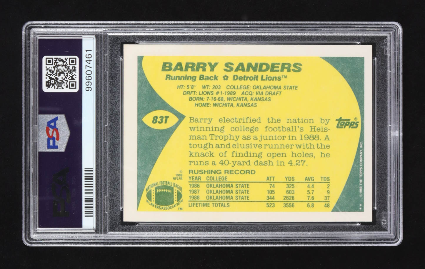Barry Sanders 1989 Topps Traded #83T RC (PSA 8)