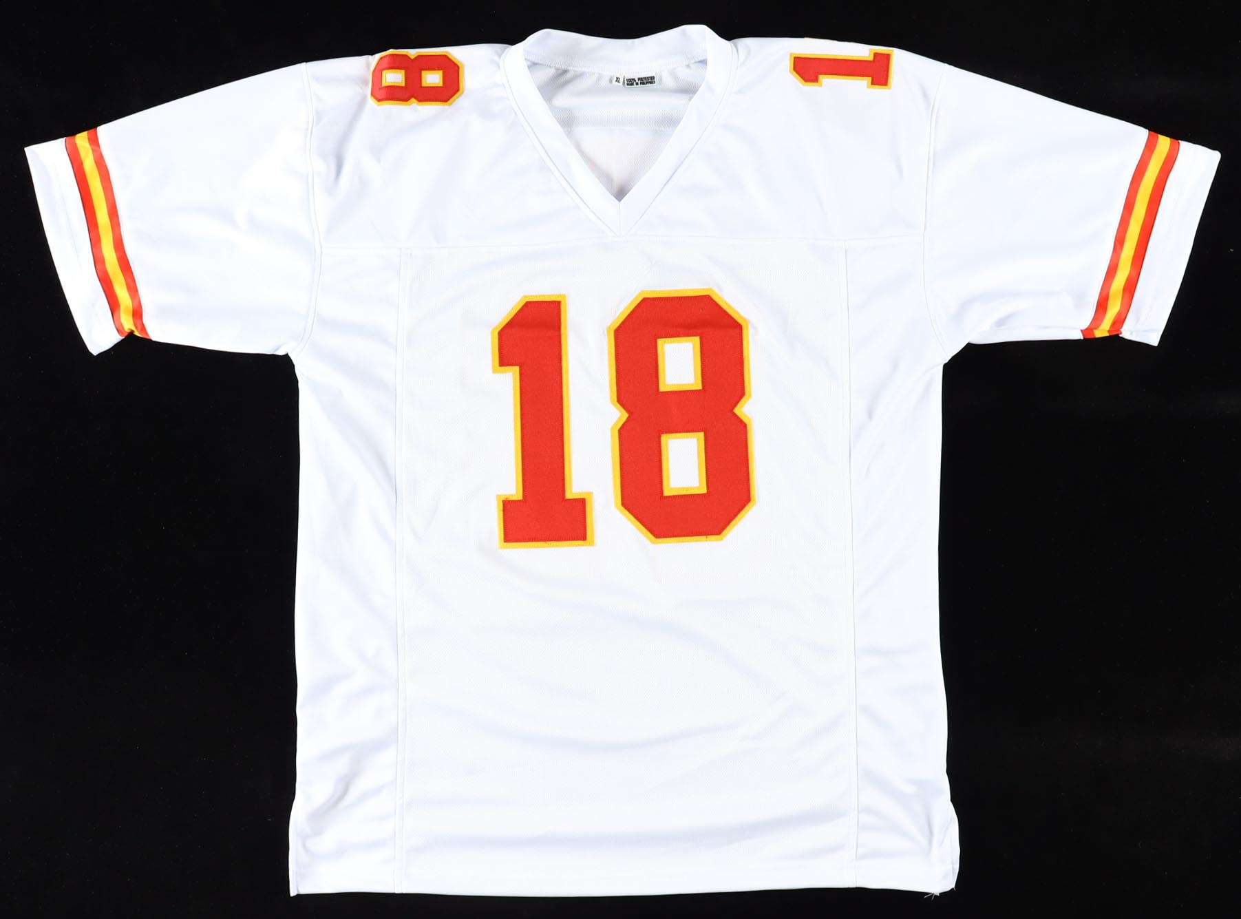 Custom jersey with everything sewn on, size XL. Hand-signed and inscribed by Emmitt Thomas.