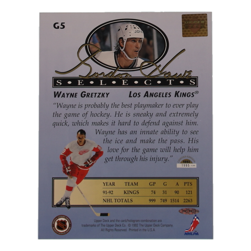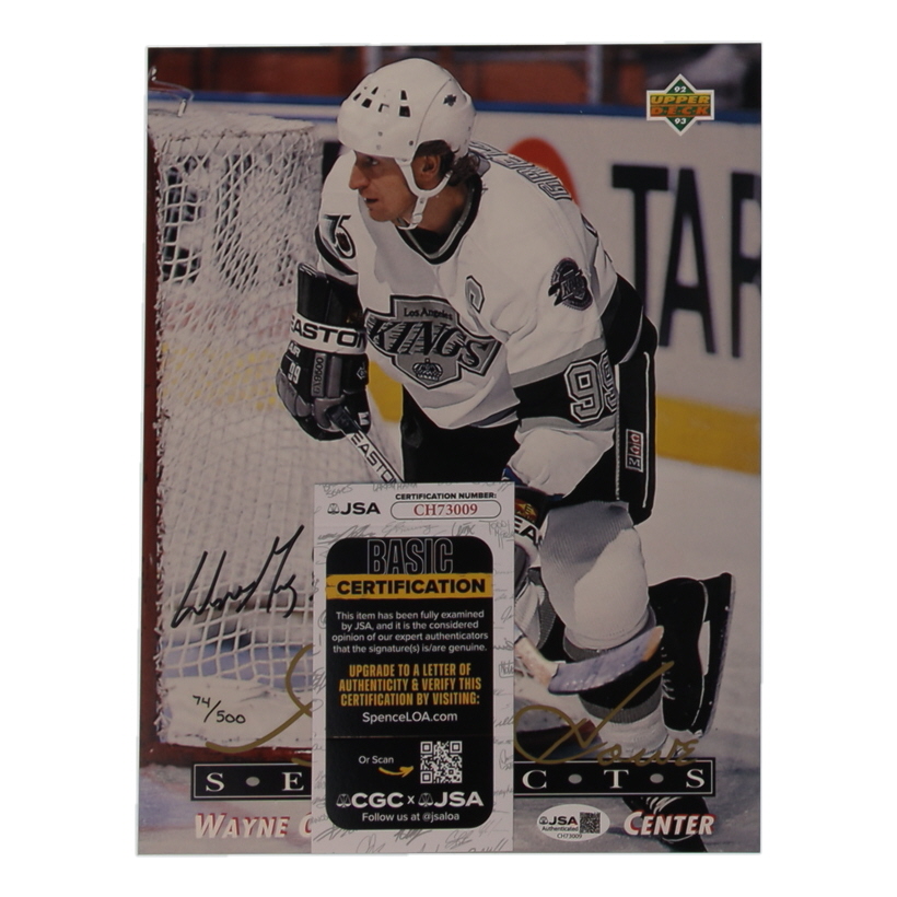 Wayne Gretzky Signed 1992-93 Upper Deck Gordie Howe Selects 8x10 #G5 #74/500 (JSA)