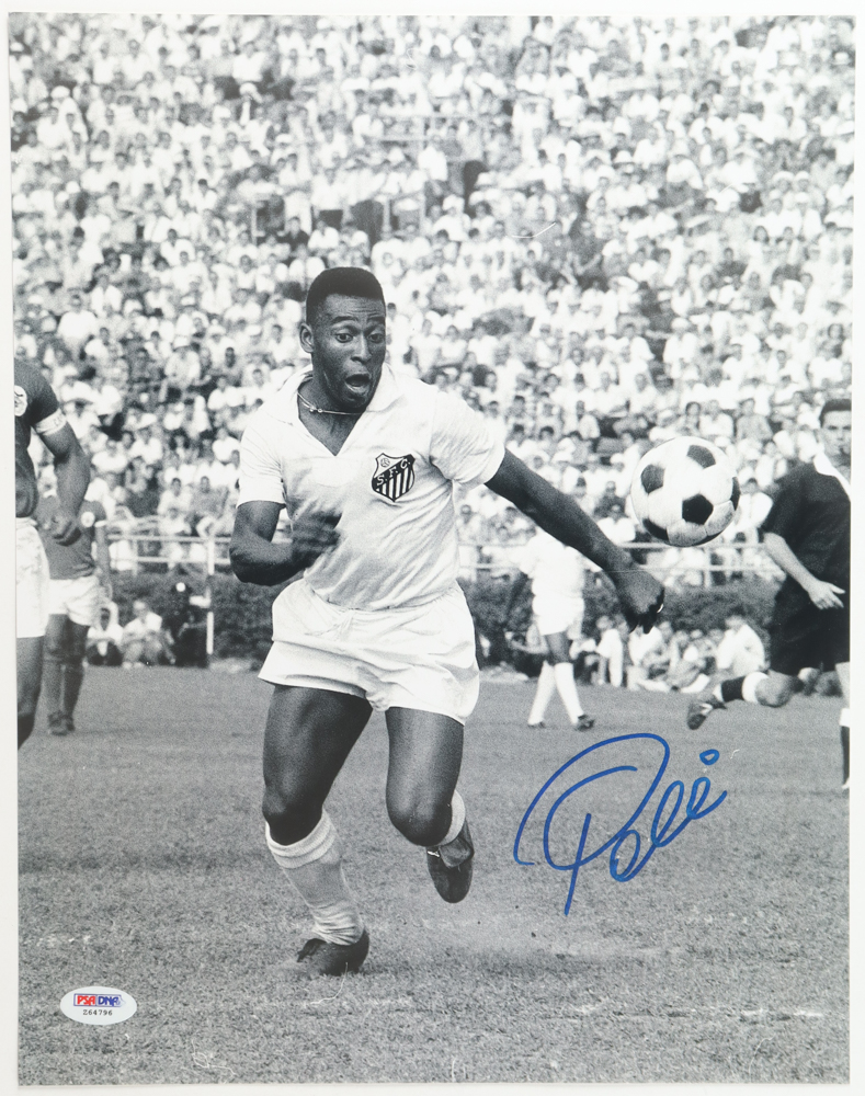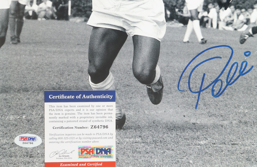 Photo measures 11" x 14" in size and has been hand-signed by Pele (D. 2022, HOF).