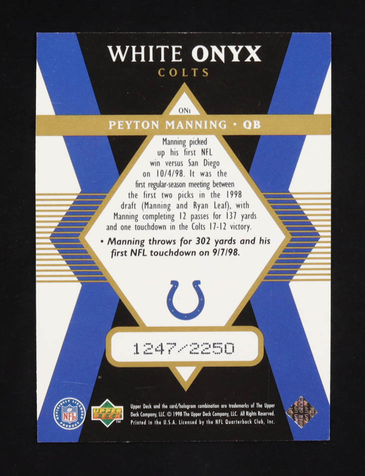 Peyton Manning 1998 Upper Deck White Onyx Black Diamond #ON1 RC #1247/2250