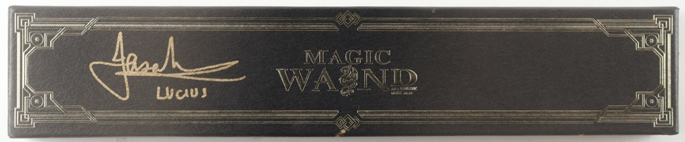 Wand measures approximately 14" long. Hand-signed and inscribed on the packaging by Jason Isaacs (Lucius Malfoy).