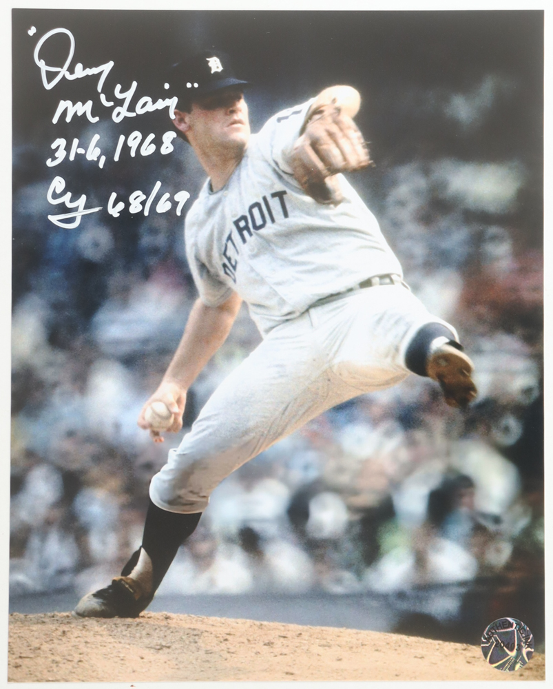Denny McLain Signed Tigers 8x10 Photo Inscribed "31-6, 1968" & "Cy 68/69" (Authentic Ink)