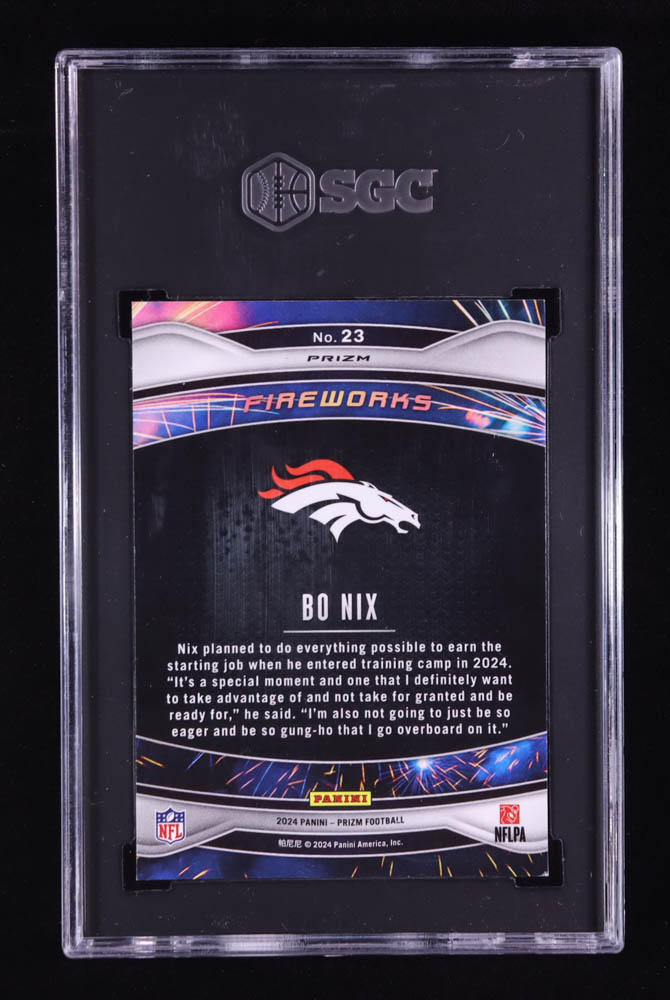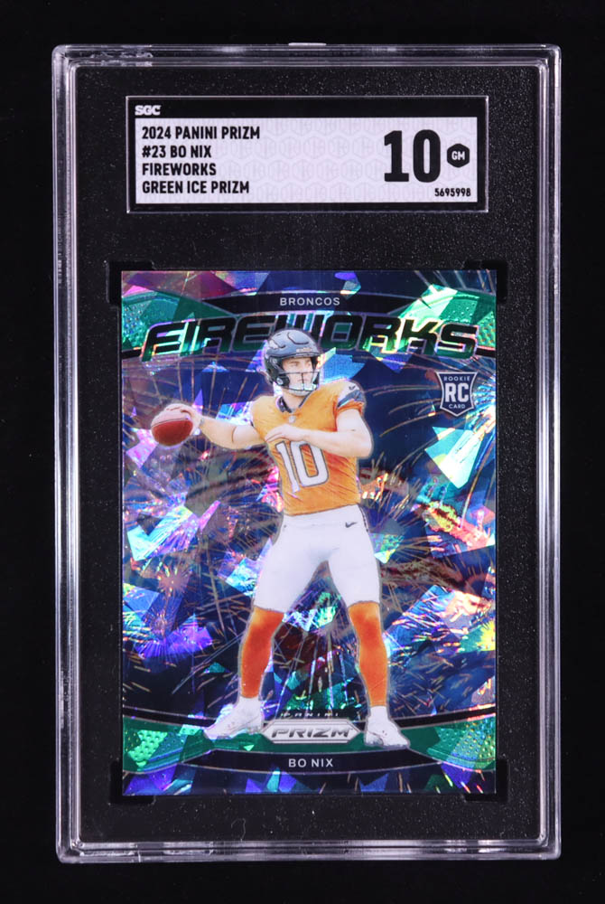 Bo Nix 2024 Panini Prizm Fireworks Prizms Green Ice #23 RC (SGC 10)