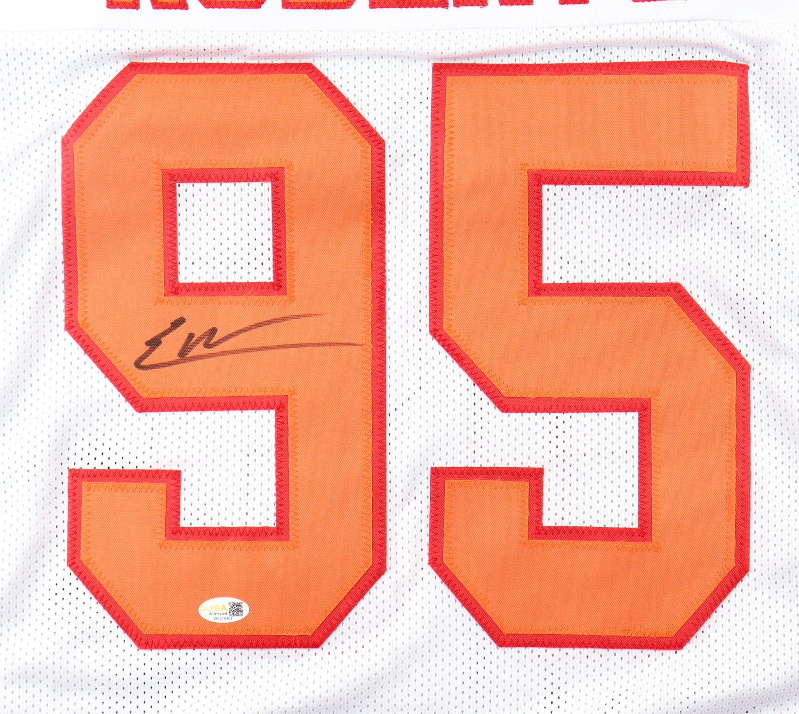 Custom jersey. Everything is sewn on, size XL. Hand-signed by Elijah Roberts.