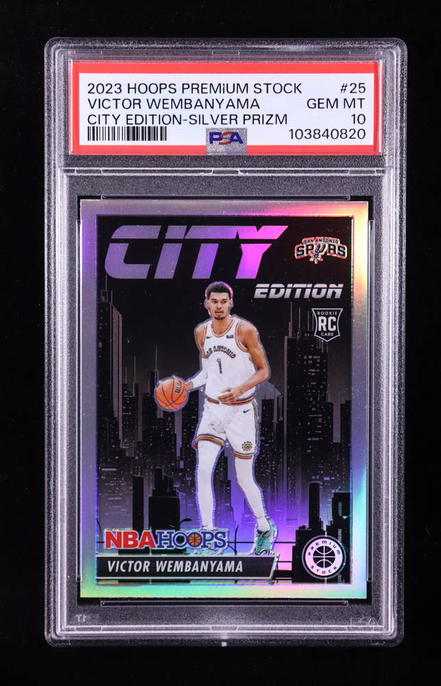 Victor Wembanyama 2023-24 Hoops Premium Stock City Edition Silver Prizm #25 RC (PSA 10)