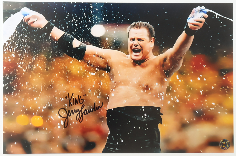 Photo measures approximately 11" x 17" in size. Hand-signed by Jerry "The King" Lawler (HOF).