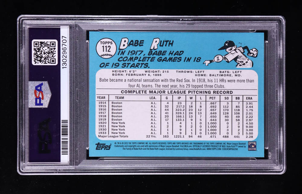 Babe Ruth 2023 Topps Archives '65 Topps Inverted Variations #112 (PSA 9)