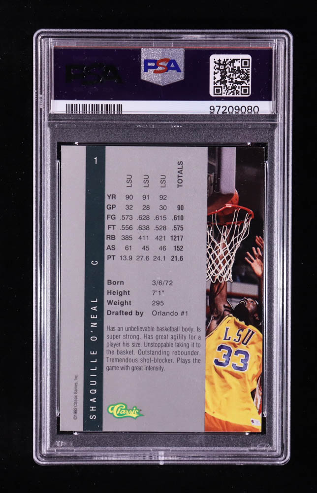 Shaquille O'Neal Signed 1992 Classic Four Sport #1 RC (PSA)