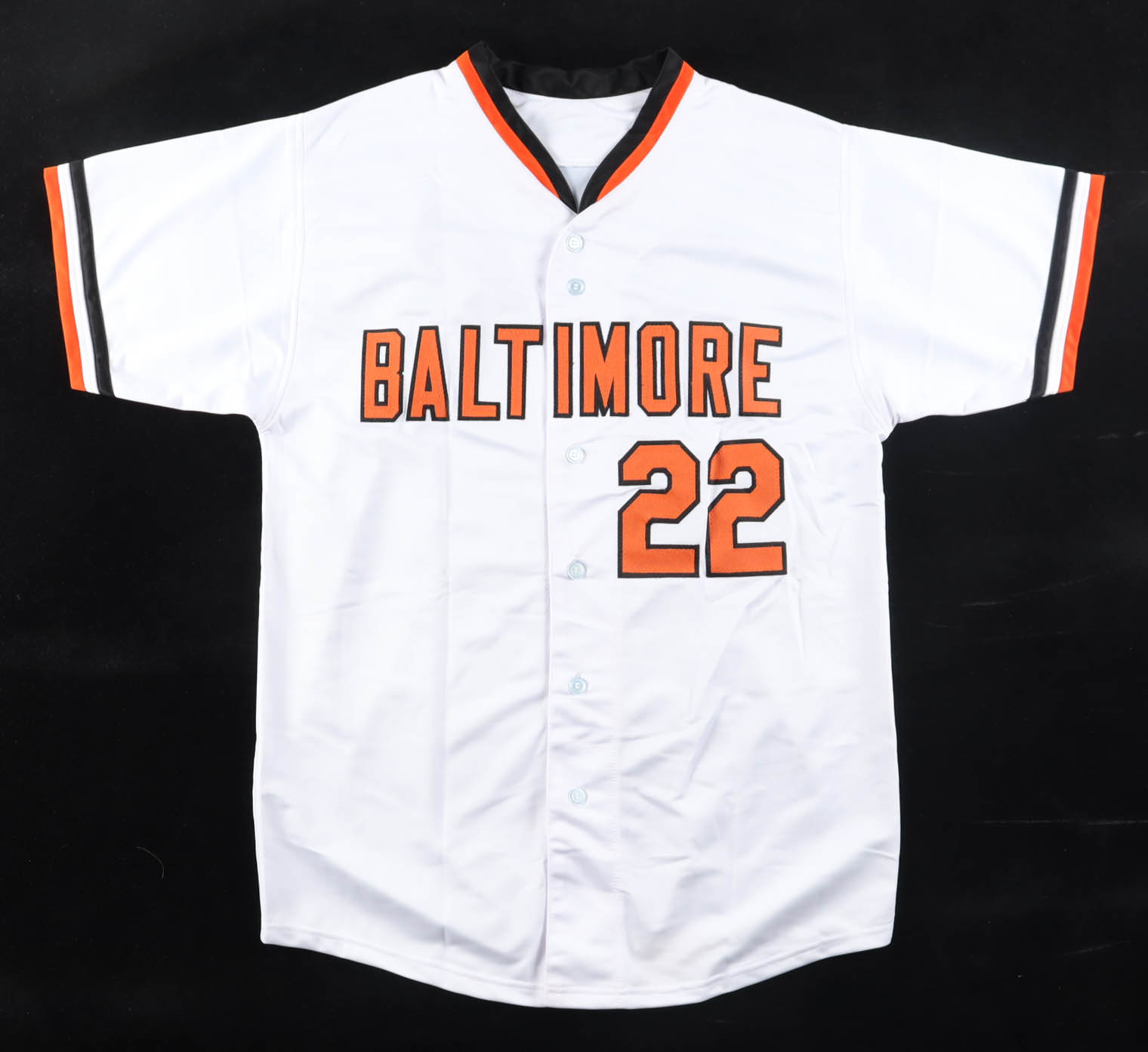 Custom jersey. Everything is sewn on, size XL. Hand-signed and inscribed by Jim Palmer. (HOF)