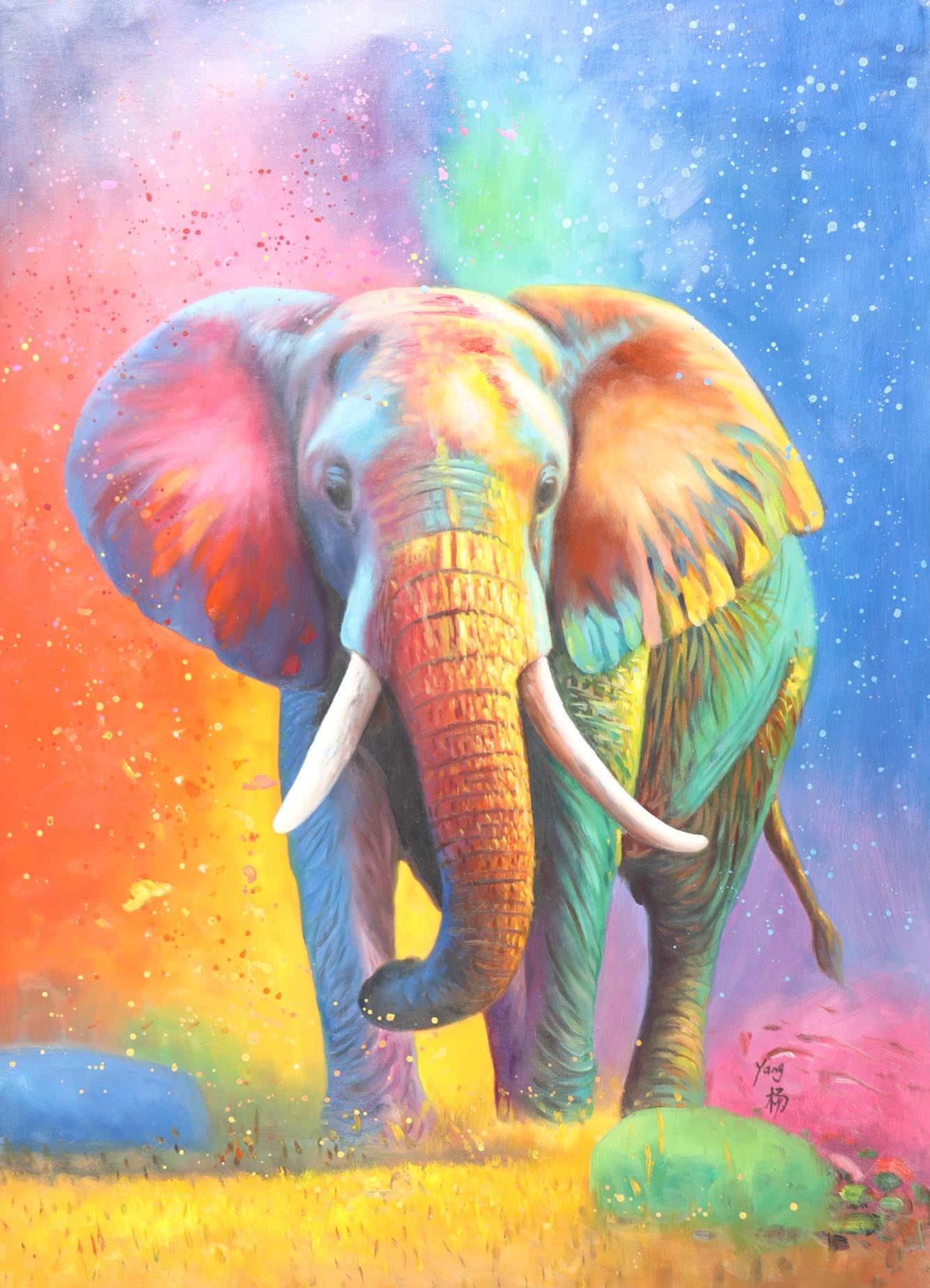 "Majestic Elephant" 25x36 Original Oil Painting on Linen by Rodney Weng (Weng)