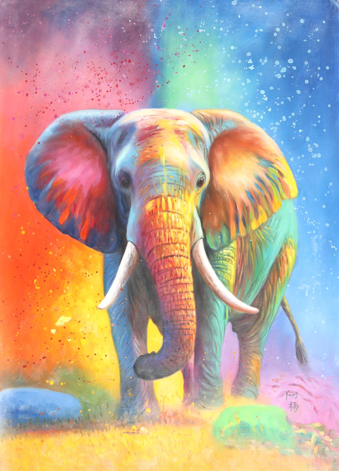 "Majestic Elephant" 25x36 Original Oil Painting on Linen by Rodney Weng (Weng)
