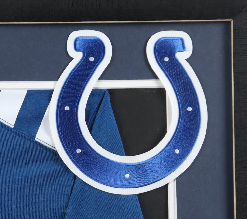 Custom frame measures approximately 31.5" x 36.5" in size and features a jersey that has been hand-signed by Anthony Richardson.