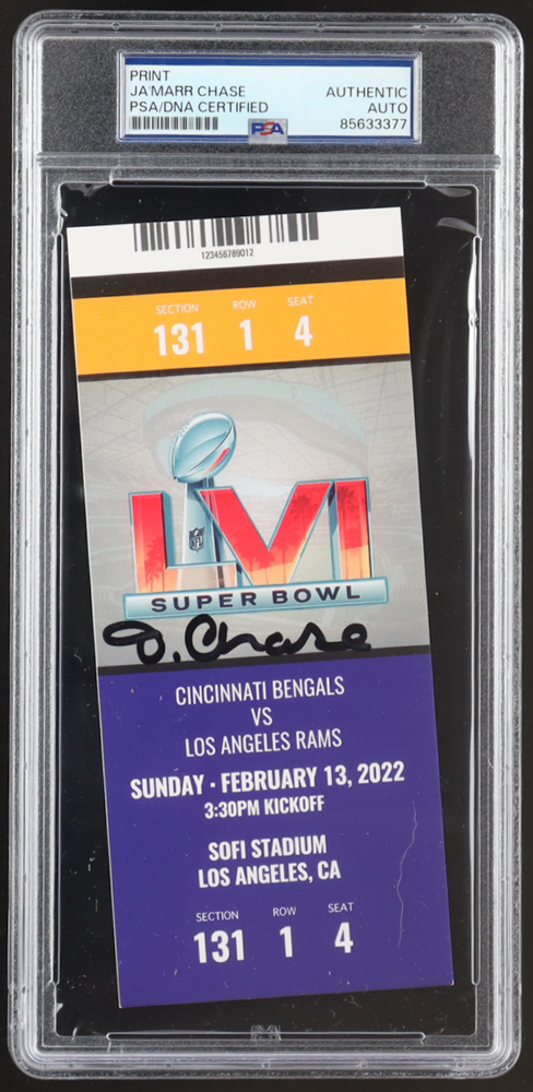 Ja'Marr Chase Signed 2022 Super Bowl LVI Game Ticket Print (PSA)