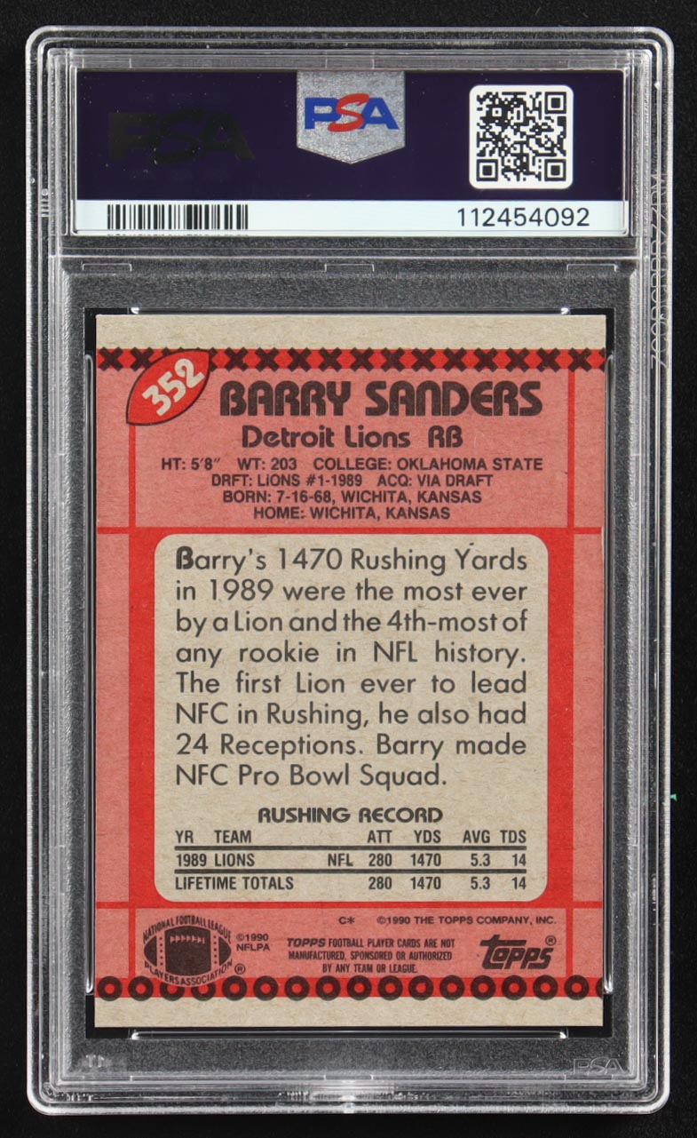 Barry Sanders 1990 Topps Disclaimer Back #352 (PSA 9)