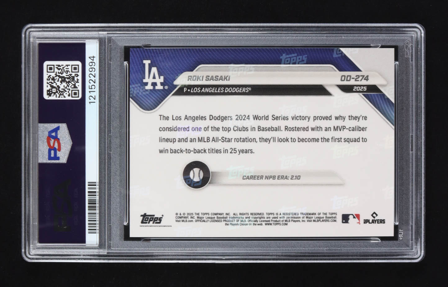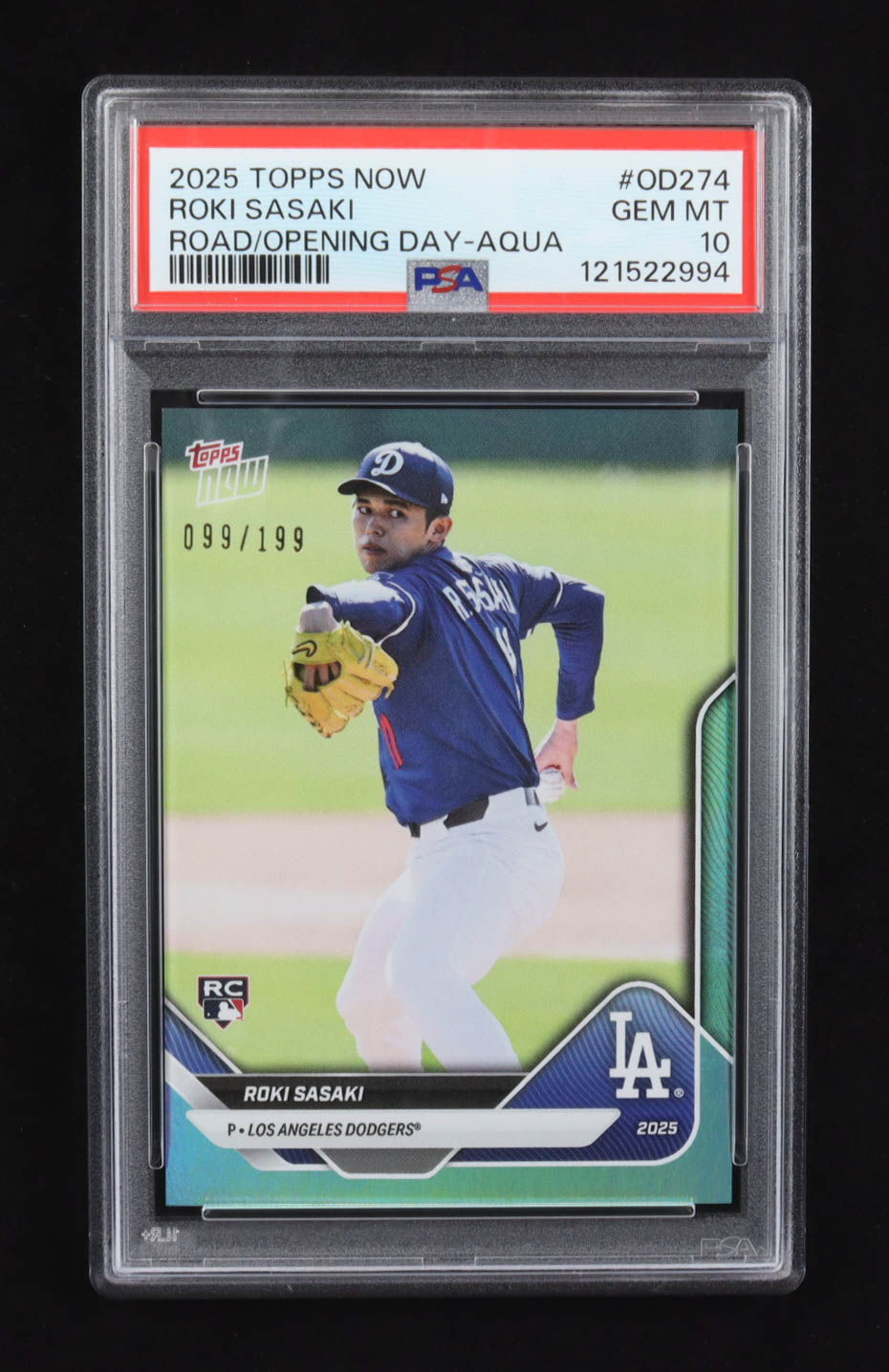 Roki Sasaki 2025 Topps Now Road/Opening Day Aqua #OD274 RC #099/199 (PSA 10)
