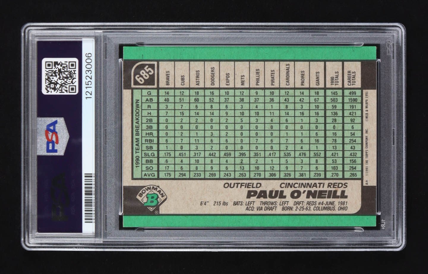 Paul O'Neill 2024 Archives Signature 1991 Bowman #685 #1/1 (PSA 8)