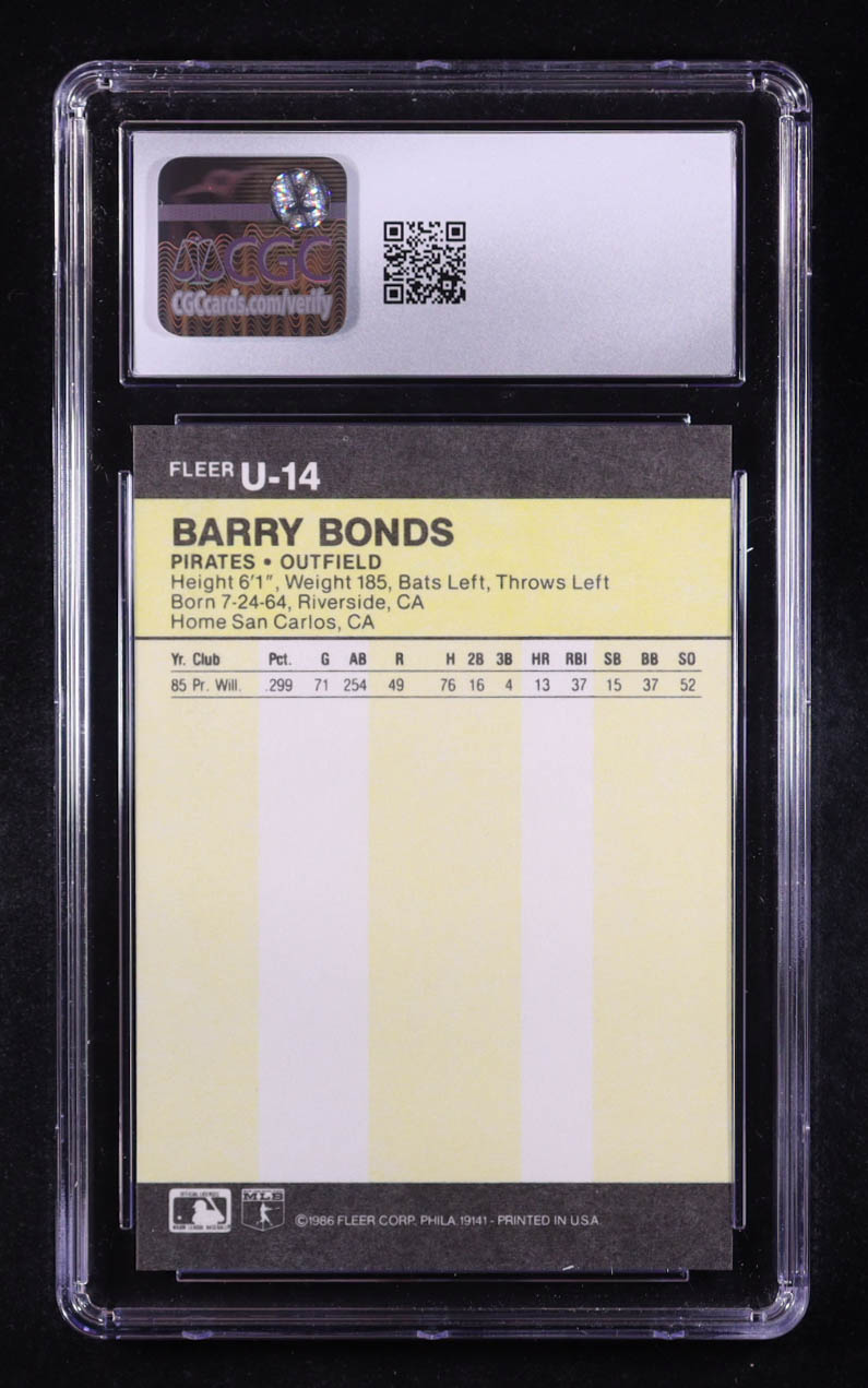 Barry Bonds 1986 Fleer Update #U14 XRC (CGC 9)
