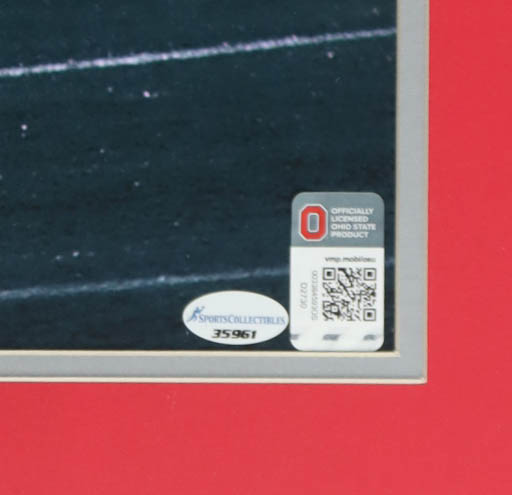 Custom frame measures approximately 22" x 26" in size and has been hand-signed and inscribed by Archie Griffin. Please see photos for details regarding the item.
