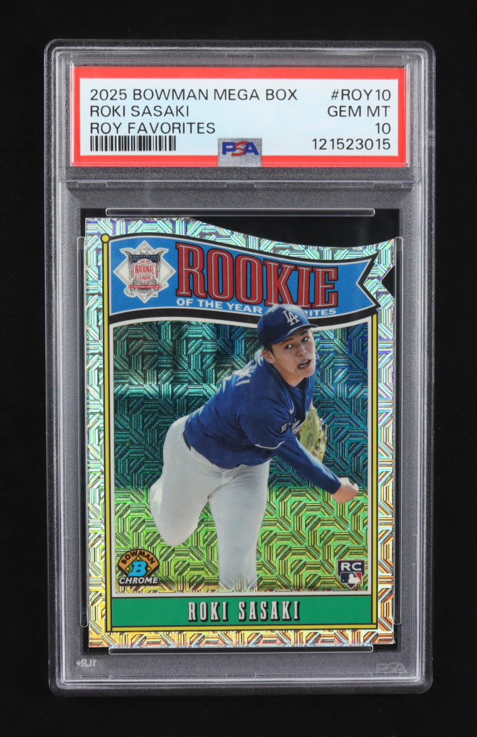 Roki Sasaki 2025 Bowman Mega Box Roy Favorites #ROY-10 RC (PSA 10)