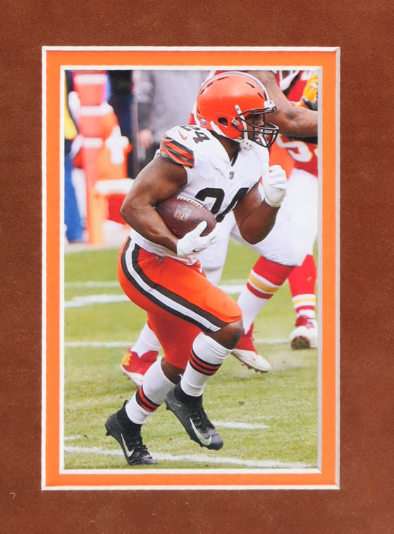 Custom frame measures approximately 28" x 30" in size. Featuring a photo that has been hand-signed by Nick Chubb (Cleveland Browns).