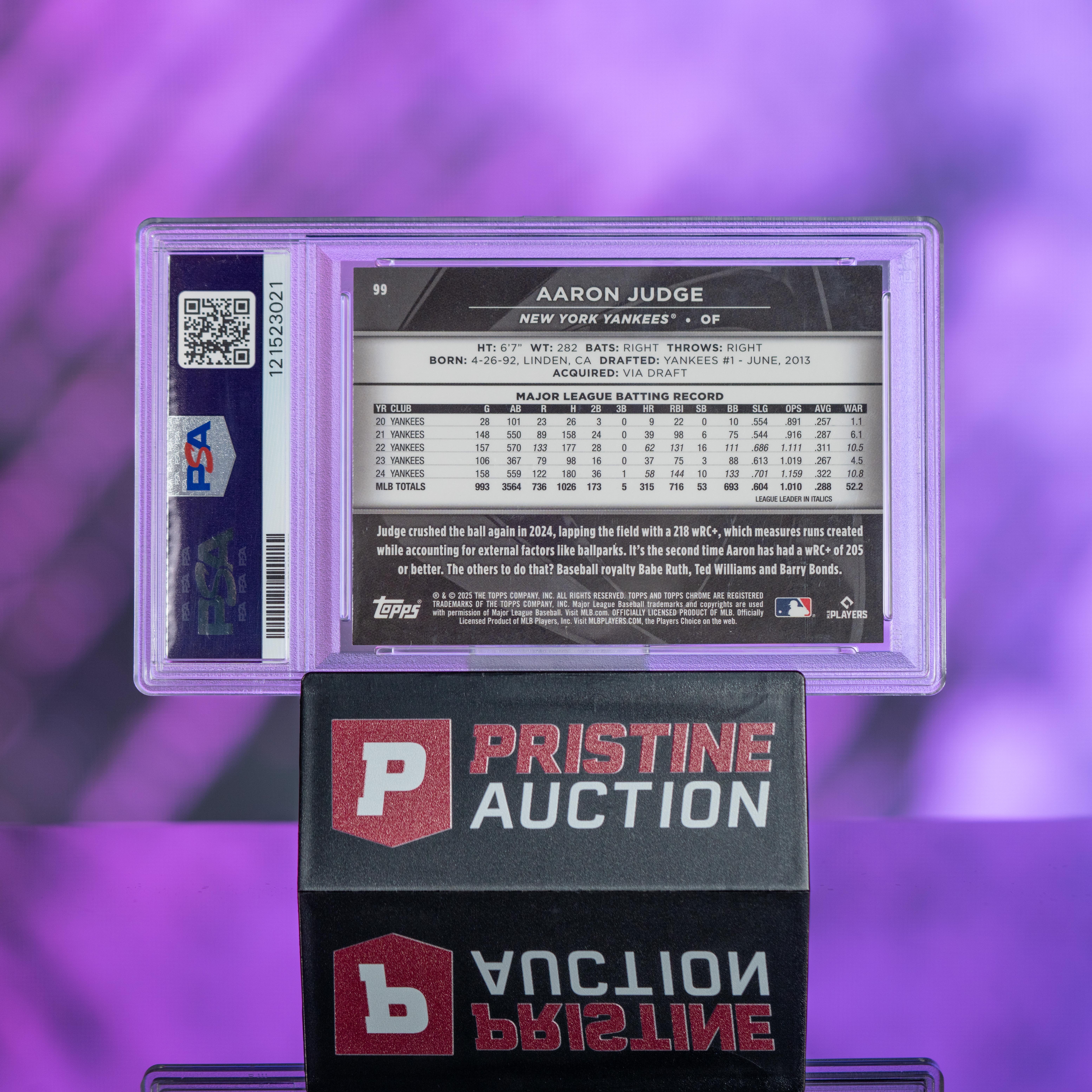 Aaron Judge 2025 Topps Chrome Black Purple Mini Diamond #99 #07/75 (PSA 10)