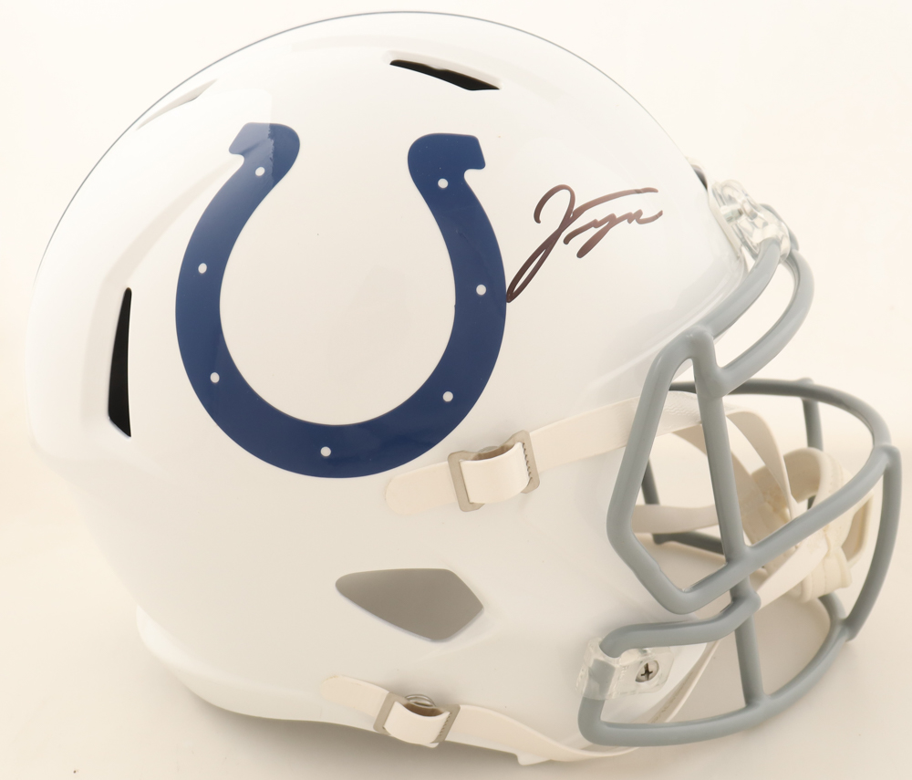Riddell Indianapolis Colts full-size speed replica helmet. Hand-signed by Jonathan Taylor.