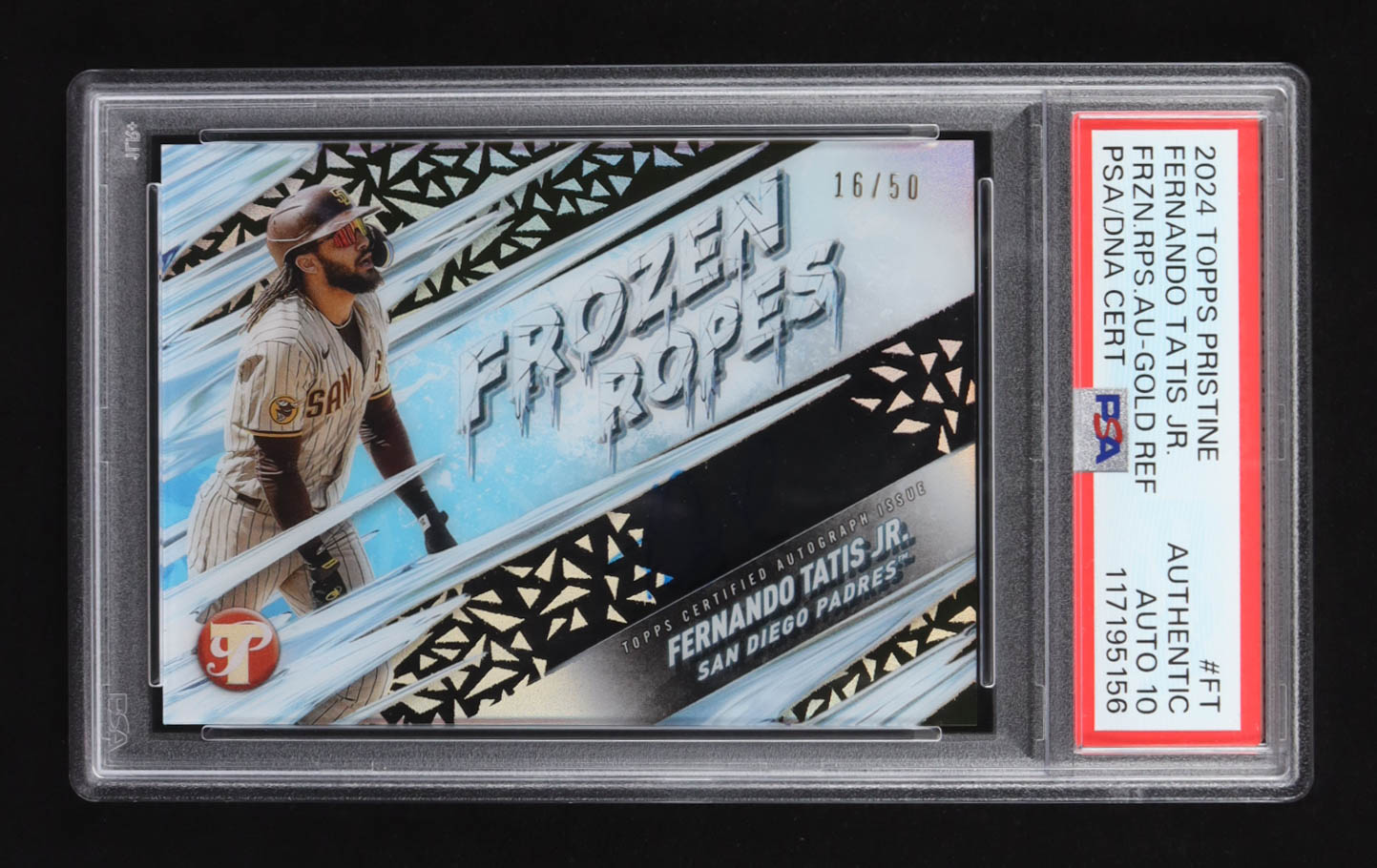 Fernando Tatis Jr. 2024 Topps Pristine Frozen Ropes Gold Refractor Auto #FT #16/50 (PSA 10)