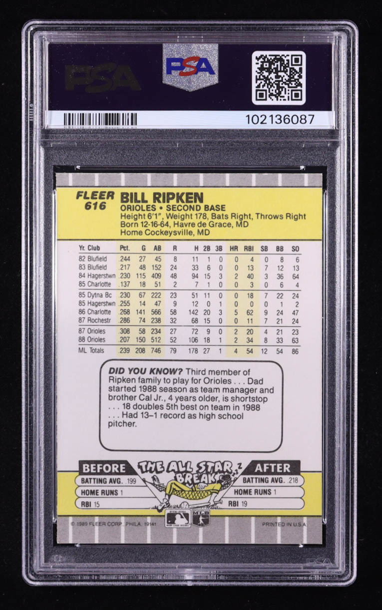 Bill Ripken 1989 Fleer #616E DP / Black Box Covering Bat Knob (PSA 9)