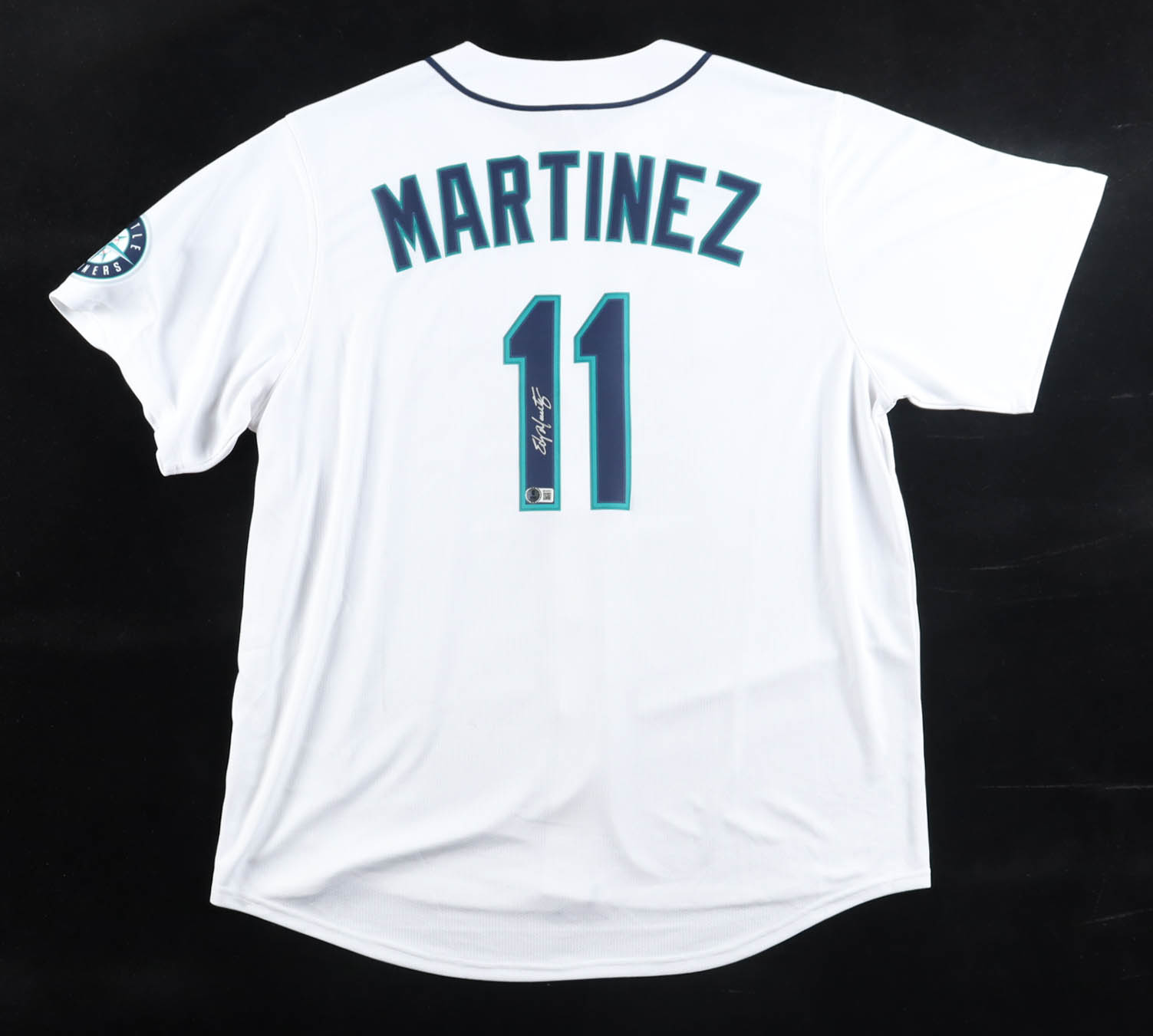 Nike jersey. Everything is pressed on, size XL. Hand-signed by Edgar Martinez (Seattle Mariners, HOF).