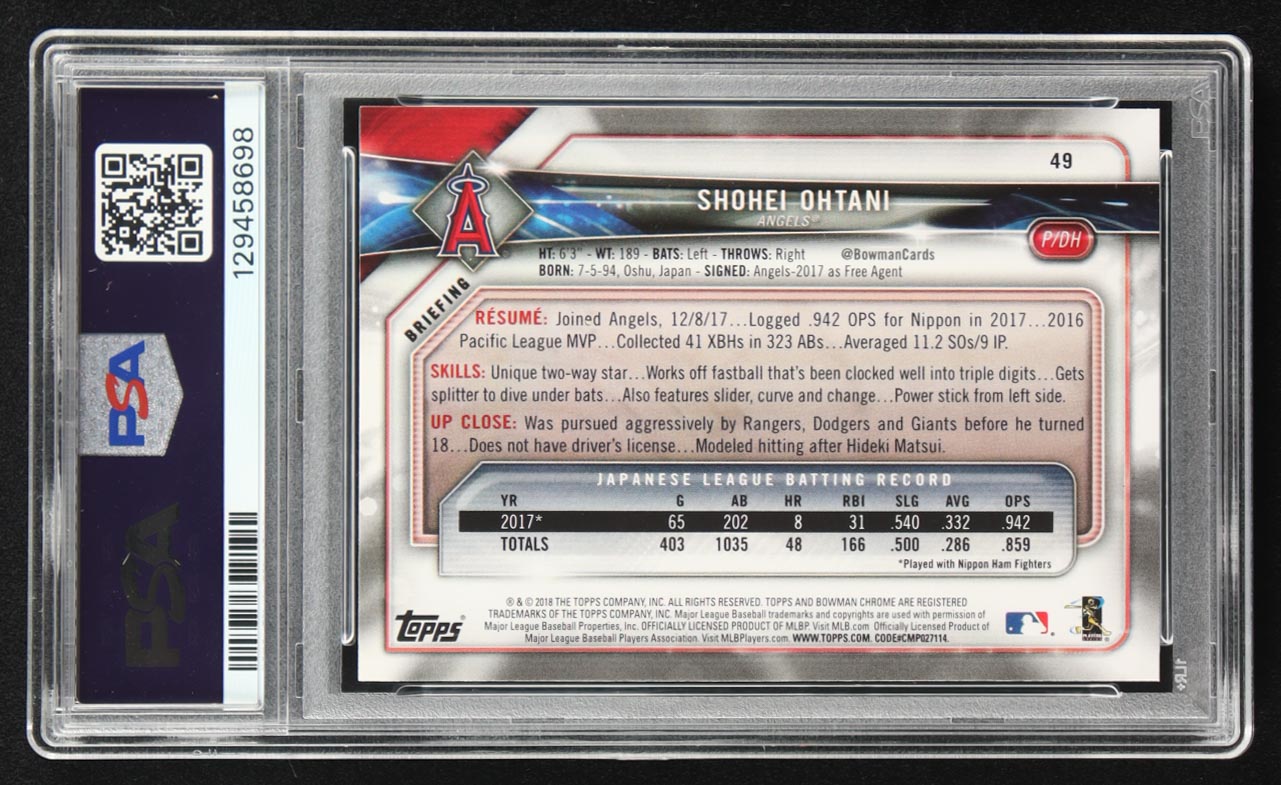 Shohei Ohtani 2018 Bowman #49 RC (PSA 9)