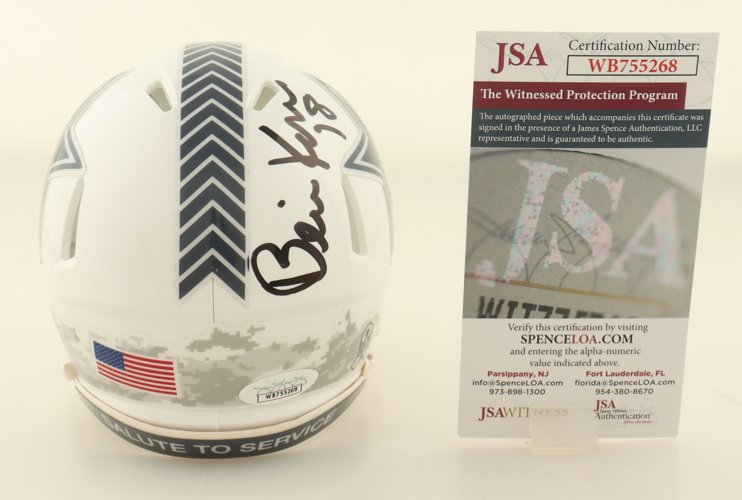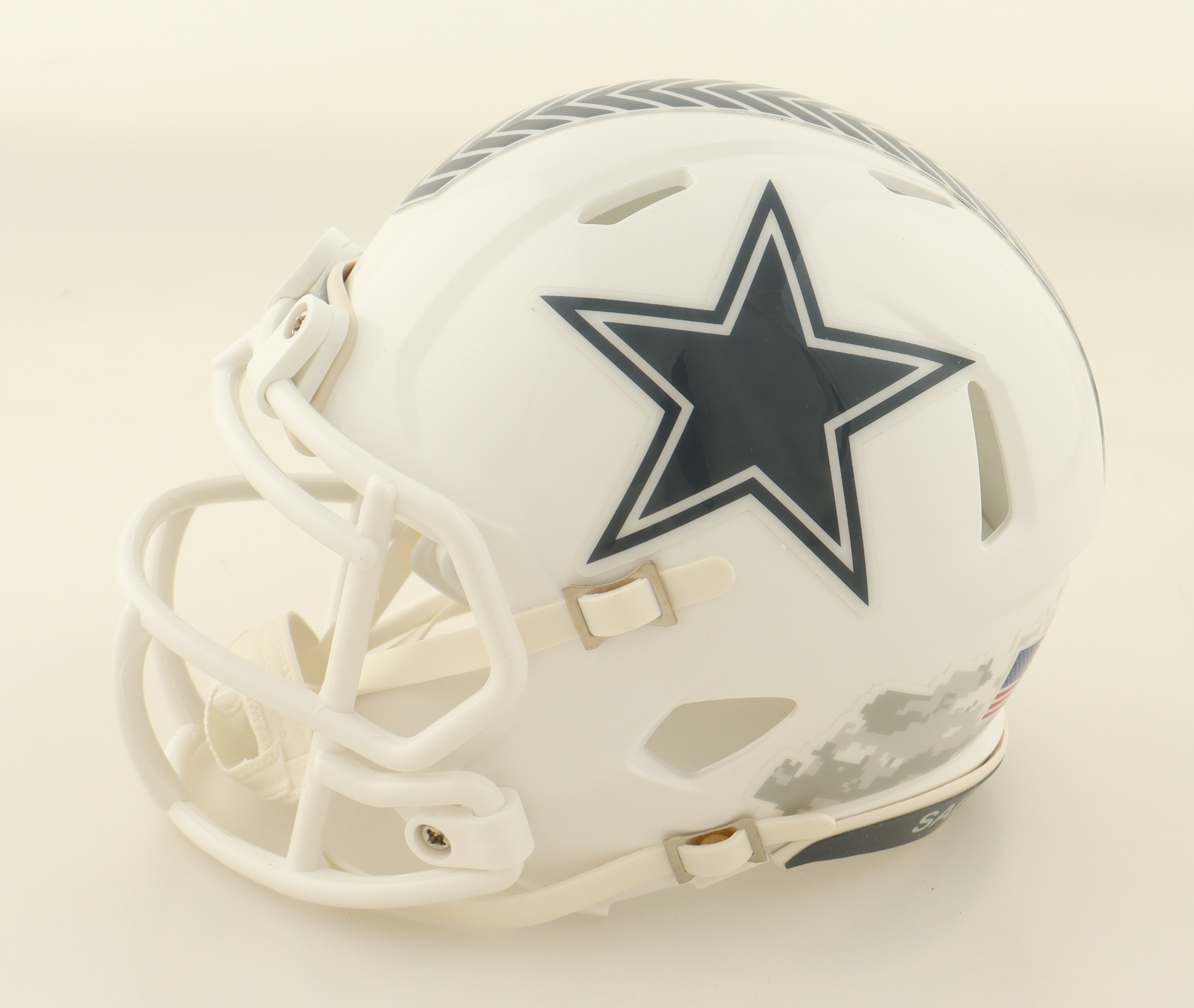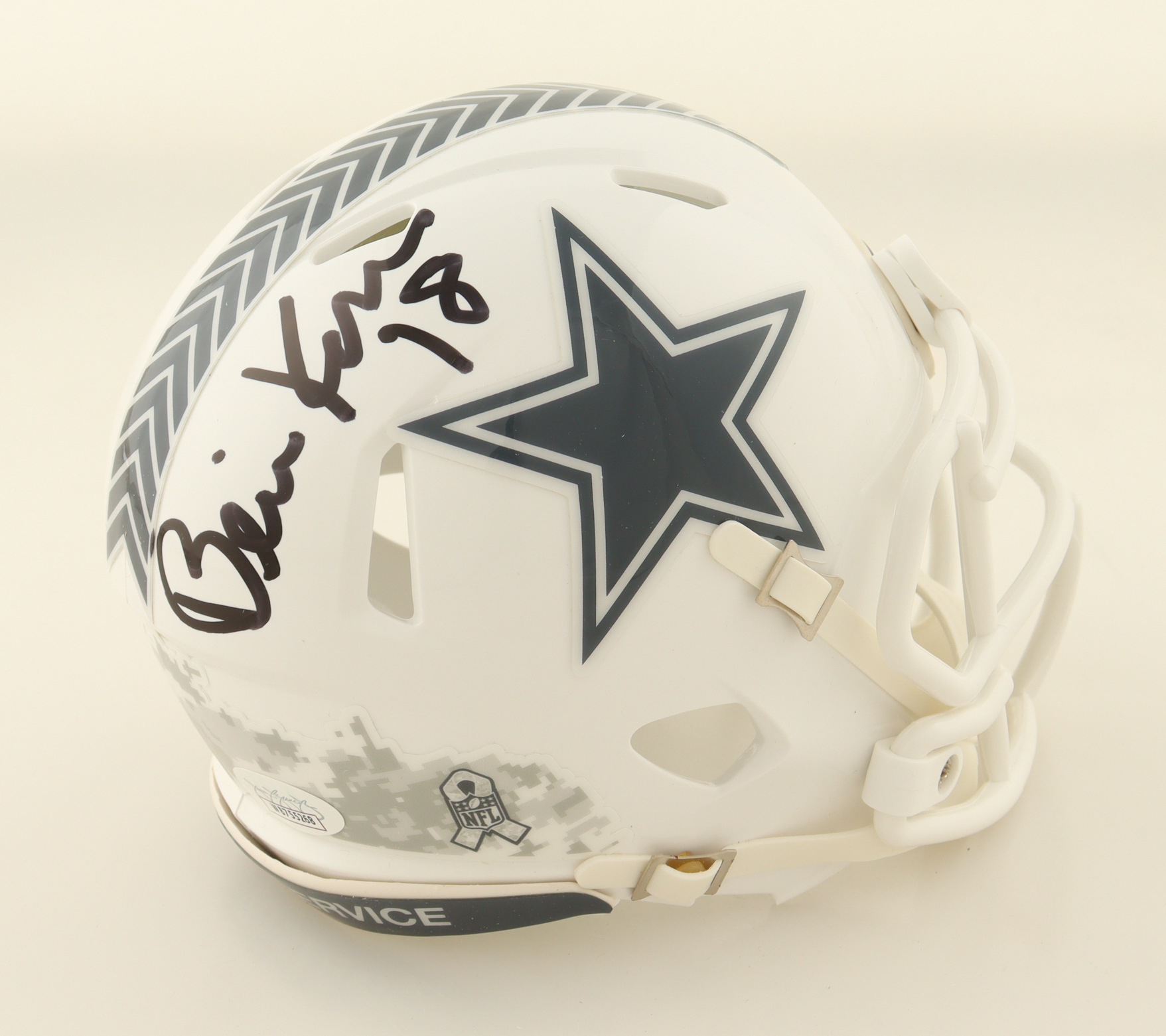 Riddell Dallas Cowboys Salute To Service Alternate Speed mini helmet. Hand-signed by Bernie Kosar.